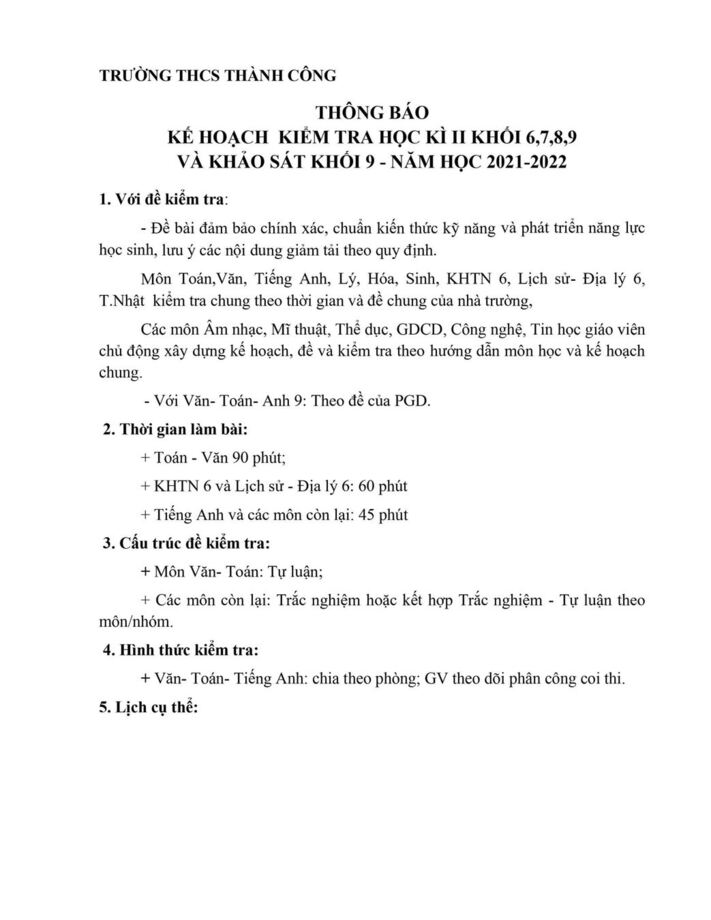 THÔNG BÁO: Đề cương và lịch kiểm tra học kì 2 năm học 2021-2022 lớp 6