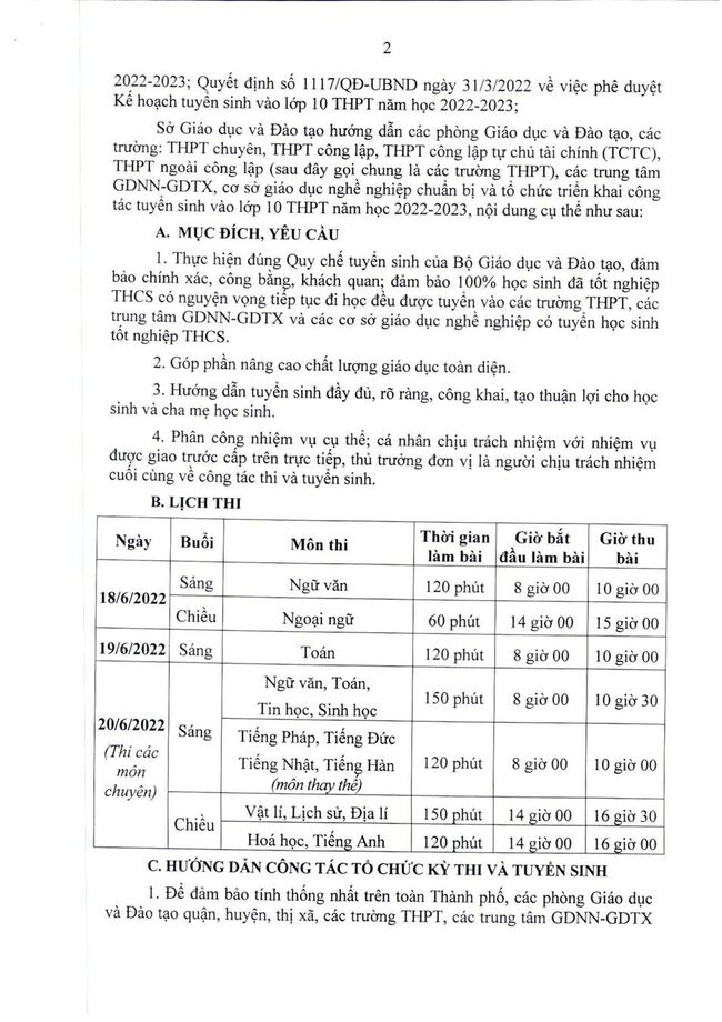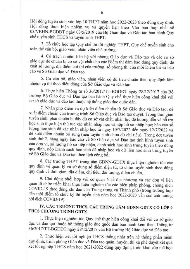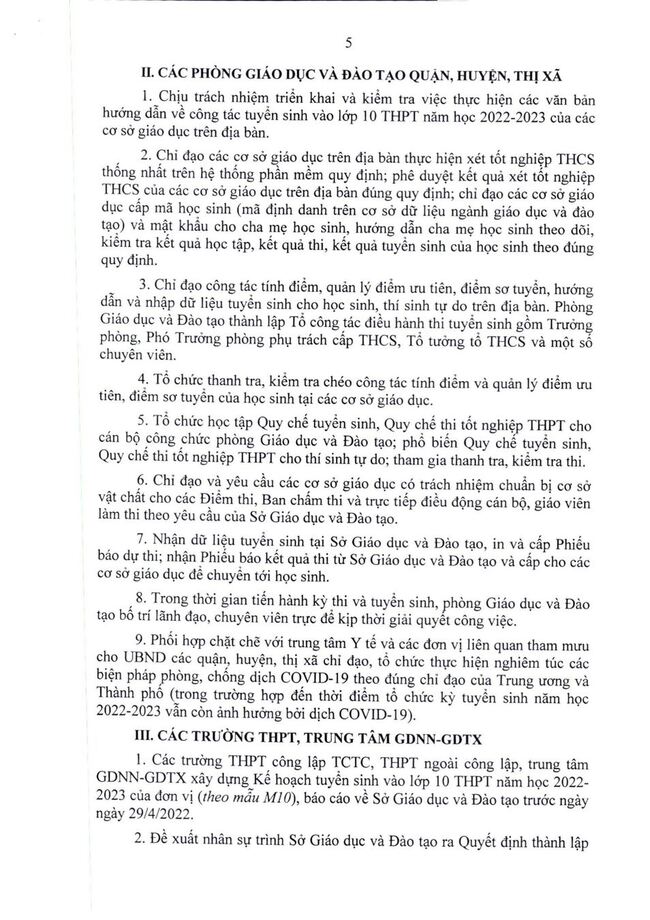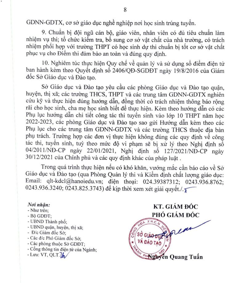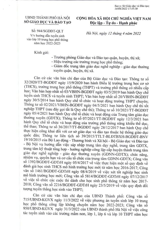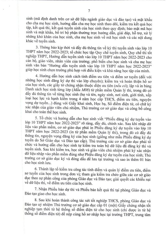 Thông báo: hướng dẫn tuyển sinh vào 10, năm 2022