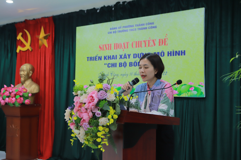 Phát biểu chỉ đạo hội nghị, bà Nguyễn Thị Đoan Trang biểu dương tinh thần đi đầu làm điểm của Chi bộ trường THCS Thành Công khi tổ chức thành công sinh hoạt chi bộ chuyên đề “Chi bộ bốn tốt” đã cụ thể hoá và đưa các nghị quyết của đảng vào đời sống. Bà Nguyễn Thị Đoan Trang cũng nhấn mạnh, việc triển khai mô hình “Chi bộ bốn tốt” của nhà trường đã phát huy được tinh thần 6 nghĩ đối với đảng viên: dám nghĩ, dám làm, dám nói, dám chịu trách nhiệm, dám đổi mới, dám đương đầu với những khó khăn thử thách.