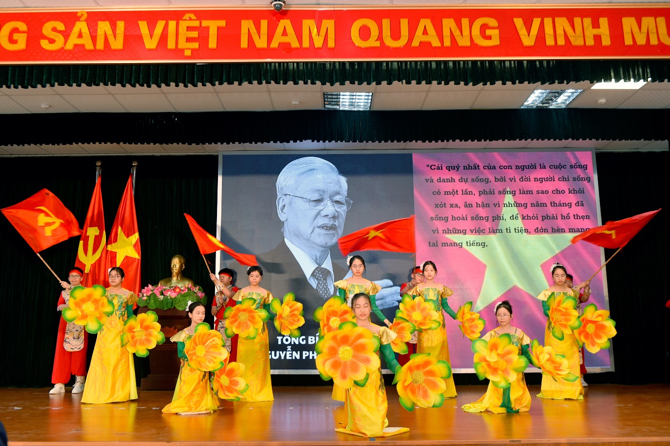 Ảnh: Học sinh trường THCS Thành Công biểu diễn văn nghệ chào mừng Hội nghị