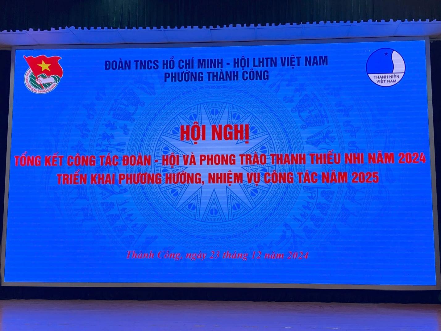 Đặc biệt, trong hội nghị lần này, Chi đoàn trường THCS Thành Công đã được Ủy ban nhân dân phường Thành Công trao tặng Giấy khen vì những thành tích xuất sắc trong công tác Đoàn và phong trào thanh thiếu nhi năm 2024. Đây là sự ghi nhận xứng đáng cho những nỗ lực của Chi đoàn trong việc triển khai các hoạt động ý nghĩa và sáng tạo, góp phần lan tỏa tinh thần đoàn kết, trách nhiệm và nhiệt huyết của tuổi trẻ trong cộng đồng. Năm vừa qua, chi đoàn trường THCS Thành Công đã tham gia, phối hợp cùng với Đoàn TNCS Hồ Chí Minh phường Thành Công tổ chức thành công Đại hội Hội Liên hiệp Thanh niên phường nhiệm kì 2025 - 2027; hỗ trợ dẫn chương trình Tổng kết hoạt động hè vào cuối tháng 7; giới thiệu và tổ chức kết nạp Đoàn 2 đợt: tháng 3 và tháng 5 cho 67 đoàn viên ưu tú; quyên góp ủng hộ quần áo, sách vở, tiền mặt cùng đoàn phường tặng trường Tiểu học Lê Văn Tám, xã Diên Bình, huyện Đăk Tô, tỉnh Kon Tum; hoạt động Hiến máu nhân đạo cũng thường xuyên được đoàn viên chi đoàn Giáo viên nhà trường tham gia cùng Đoàn phường Thành Công. Chi đoàn cũng cử giáo viên tham gia tọa đàm “Thanh niên với Đảng – Đảng với thanh niên” cấp cụm phường, thu hút trên 100 đoàn viên tham gia; tham gia Hội nghị Đối thoại giữa Chủ tịch UBND phường với thanh niên trên địa bàn; phối hợp với UB.MTTQ và các đoàn thể chính trị xã hội tham gia Tọa đàm “Vai trò trong việc xây dựng người Hà Nội thanh lịch, văn minh theo Chỉ thị 30-CT/TU của Thành ủy Hà Nội”…
