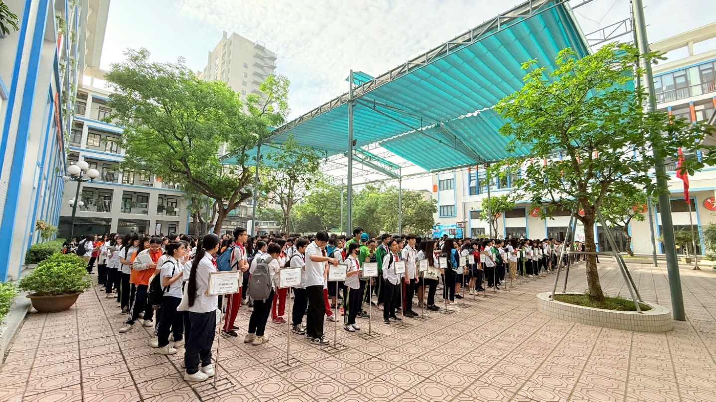 Bên cạnh đó, hệ thống cơ sở vật chất của nhà trường – vốn đã được đầu tư đồng bộ, hiện đại – cũng góp phần không nhỏ trong việc hỗ trợ tổ chức kỳ thi. Từ cổng trường, hành lang đến từng phòng học, phòng chức năng đều được vệ sinh sạch sẽ, trang trí gọn gàng, tạo nên một không gian thi nghiêm trang nhưng không kém phần gần gũi.