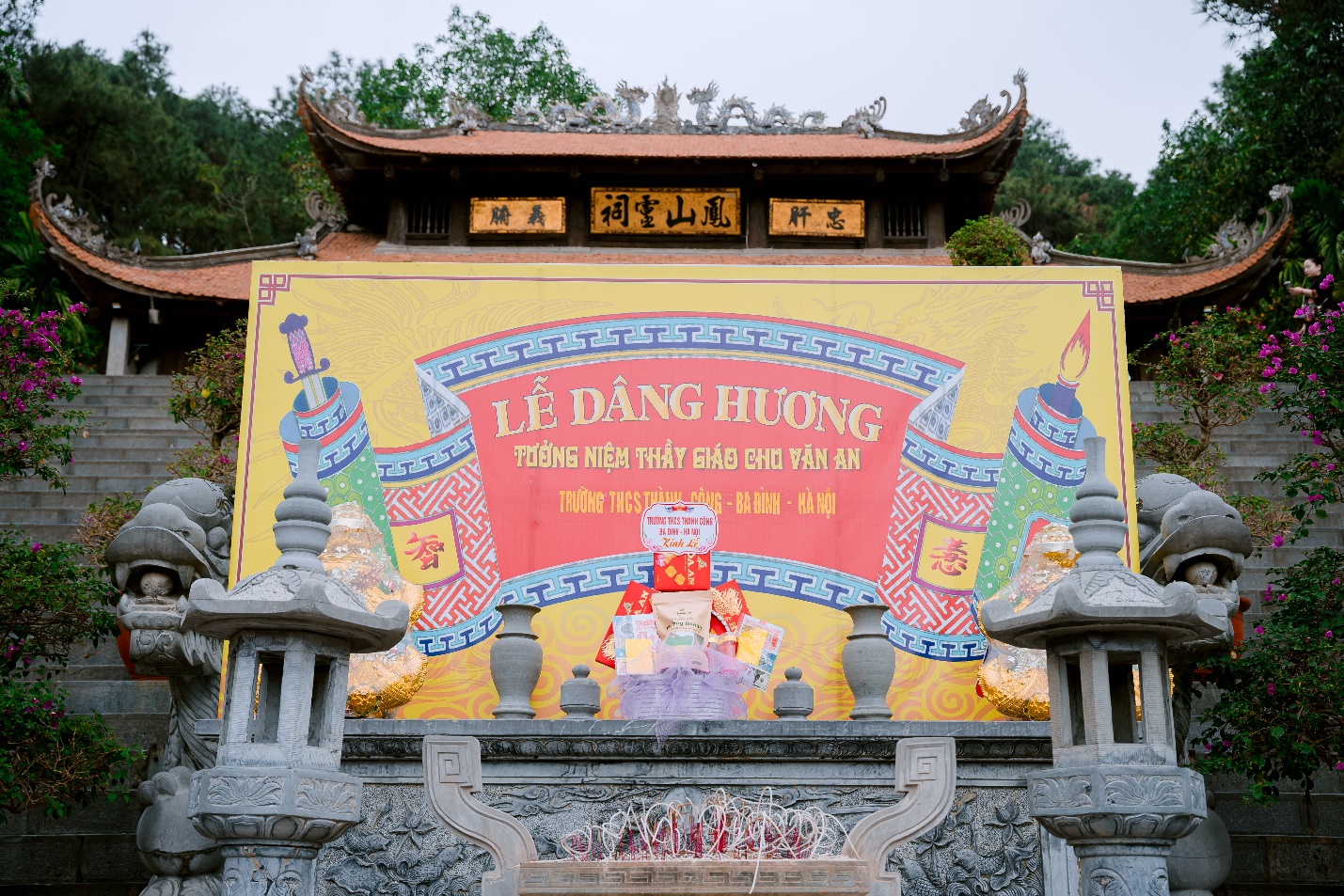 Đền thờ thầy giáo Chu Văn An tọa lạc trên núi Phượng Hoàng thuộc địa phận phường Văn An, thị xã Chí Linh, tỉnh Hải Dương. Sau lễ dâng hương nhằm tưởng nhớ công ơn của “Người thầy muôn đời”, các em học sinh khối 9 được các hướng dẫn viên thuyết minh về thân thế, sự nghiệp của thầy Chu Văn An và lịch sử hình thành đền thờ. Cả cuộc đời thầy Chu Văn An dành cho sự nghiệp dạy học. Nhân cách cao đẹp của thầy càng khiến các em ngưỡng mộ: Thầy không phân biệt học trò giàu nghèo, luôn hướng các trò học đi đôi với hành, học suốt đời. Đối với người thầy vỡ lòng cho mình, thầy Chu vẫn một lòng tri ân, kính trọng. Học trò thầy dù có làm quan to mà không giữ được đạo đức, không biết “tôn sư trọng đạo” thì thầy cũng không gặp. Những lời thuyết minh đã để lại ấn tượng sâu sắc cho các em và khơi dậy khát khao chinh phục thử thách trên con đường học tập. Với học sinh khối 9, được đến thăm đền thờ người thầy muôn đời thực sự là trải nghiệm quý giá giúp các em nhìn nhận lại mục tiêu học tập, củng cố quyết tâm và nỗ lực vươn lên trong cuộc sống.