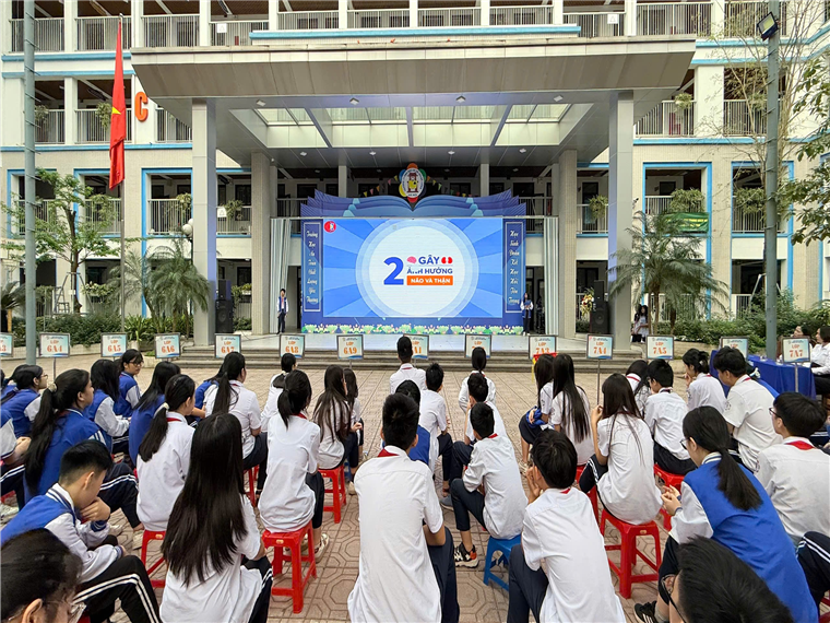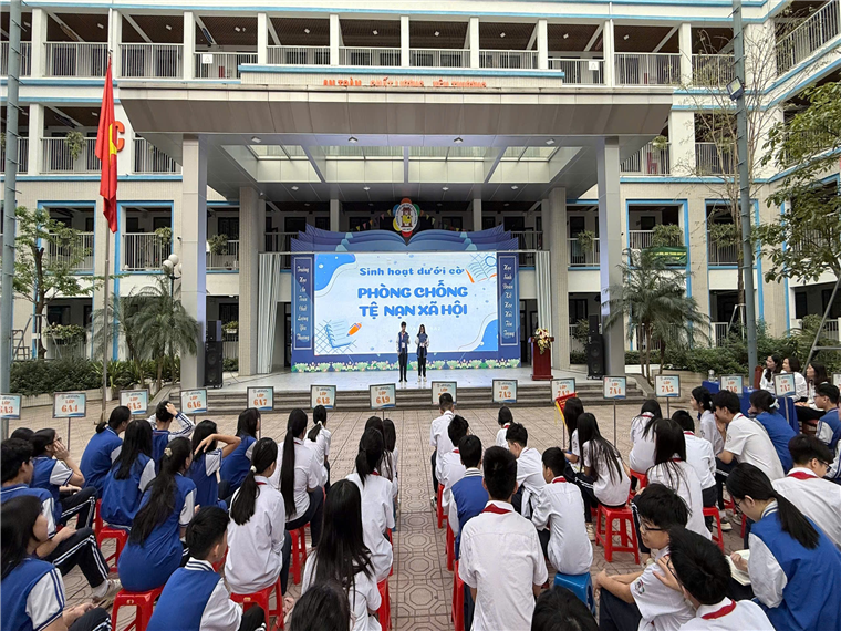 Buổi sinh hoạt chủ đề phòng chống tệ nạn xã hội thuốc lá điện tử do các em học sinh lớp 7A1 và 6A2 phối hợp thực hiện, thu hút sự quan tâm và tham gia nhiệt tình của đông đảo thầy cô giáo và học sinh toàn trường.