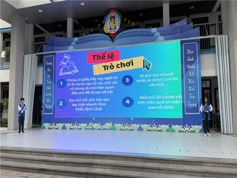 Không chỉ dừng lại ở việc truyền tải thông tin với phần thiết kế sinh động, các bạn lớp 7A1 và 6A2 còn tổ chức các trò chơi giao lưu với khán giả, giúp buổi sinh hoạt trở nên sôi động và hấp dẫn. Các câu hỏi về kiến thức về thuốc lá điện tử được đặt ra, thu hút sự tham gia nhiệt tình của các bạn học sinh. Những phần quà nhỏ được trao tặng cho những bạn có câu trả lời đúng, tạo không khí hào hứng và khuyến khích tinh thần học hỏi.