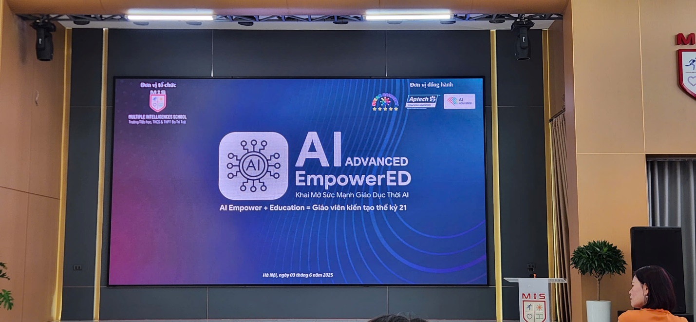 Buổi tập huấn bắt đầu với một hoạt động khởi động nhẹ nhàng, sôi nổi, giúp các thầy cô kết nối với nhau một cách tự nhiên, tạo nên bầu không khí tích cực và cởi mở. Ngay sau đó, thầy Hiệu trưởng trường MIS phát biểu khai mạc, chia sẻ những quan điểm sâu sắc về vai trò của người giáo viên trong thời đại công nghệ.