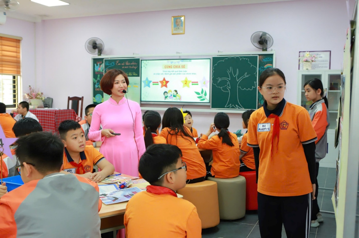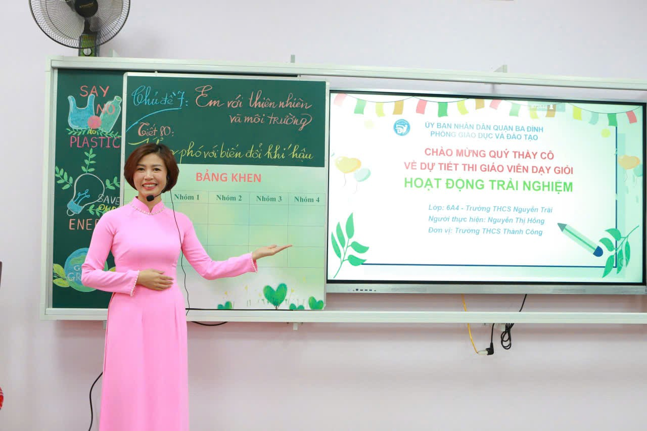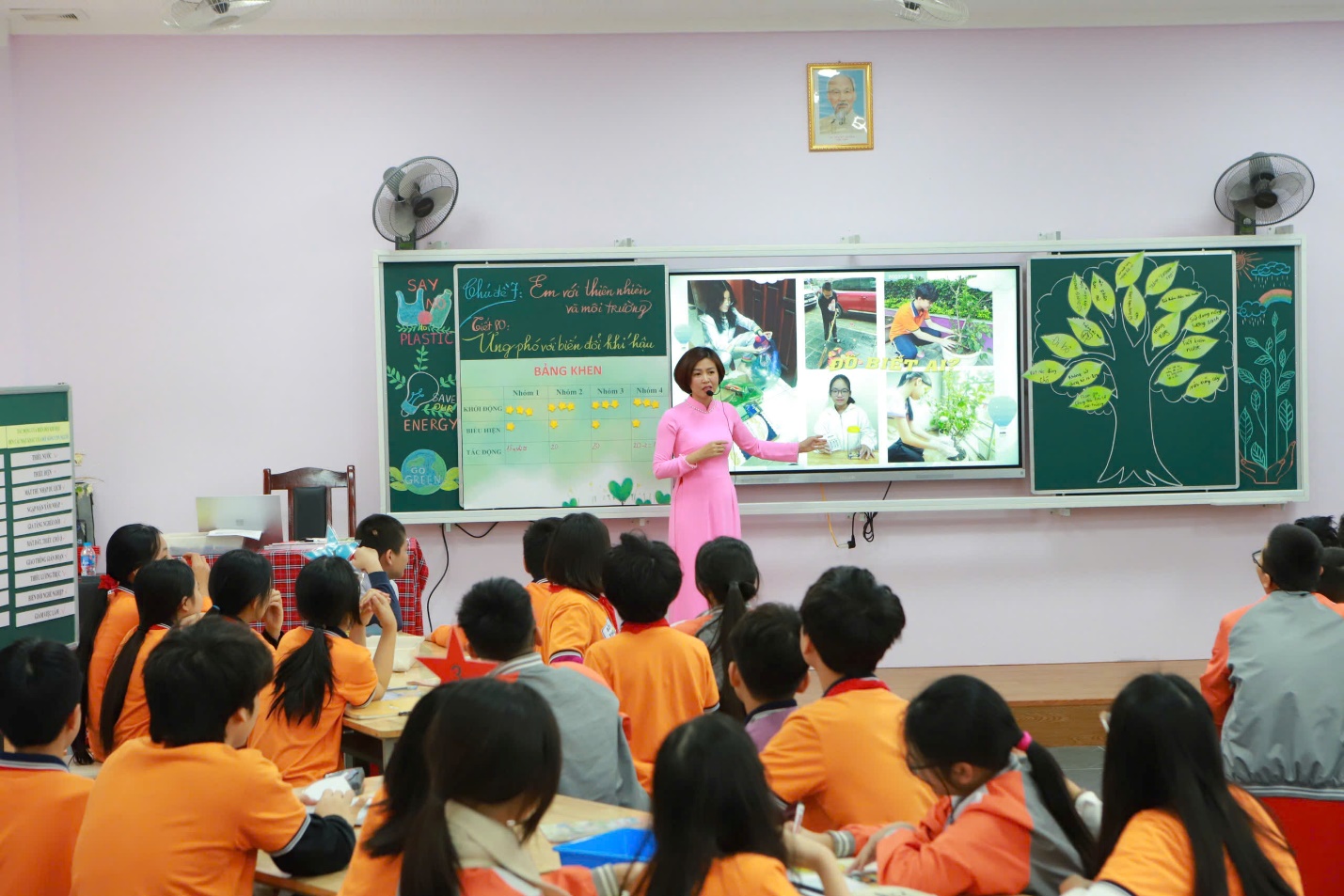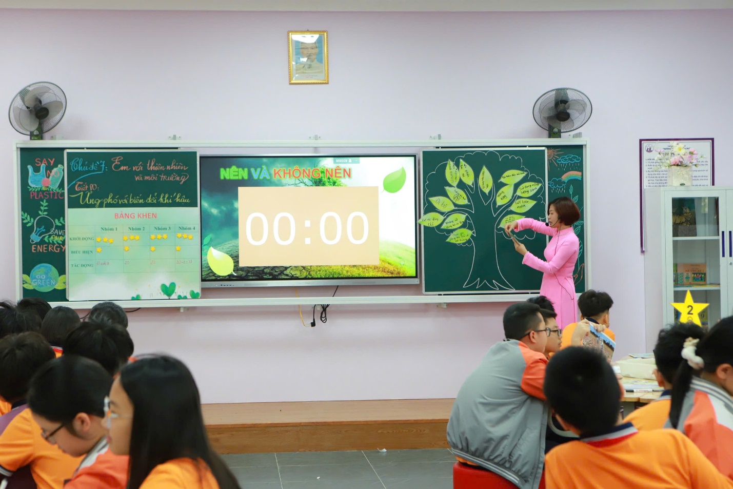 Cô Nguyễn Thị Hồng tự tin, sáng tạo thể hiện tiết Hoạt động trải nghiệm chủ đề 7: Em với thiên nhiên và môi trường, tiết 80: Ứng phó với biến đổi khí hậu. Tiết học không chỉ giúp các em hiểu đúng về thực trạng biến đổi khí hậu đang ảnh hưởng tới toàn cầu mà quan trọng hơn, cô cùng các em học sinh lớp 6A4 đã đưa ra các biện pháp ứng phó hiệu quả, hợp lí trong đời sống. Tiết học hoạt động trải nghiệm còn là cơ hội để học sinh thể hiện sự hiểu biết của bản thân, những mối quan tâm đến các vấn đề môi trường hiện nay. Các em đã hào hứng chia sẻ, trao đổi với nhau về các nội dung bài học qua một loạt hoạt động học tập sáng tạo, hấp dẫn.
