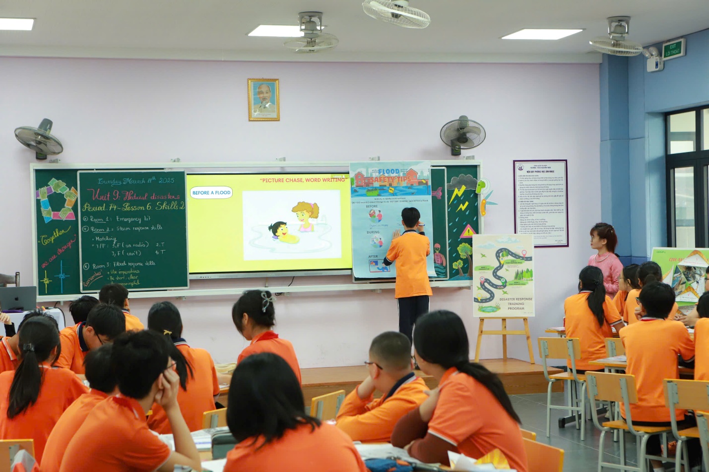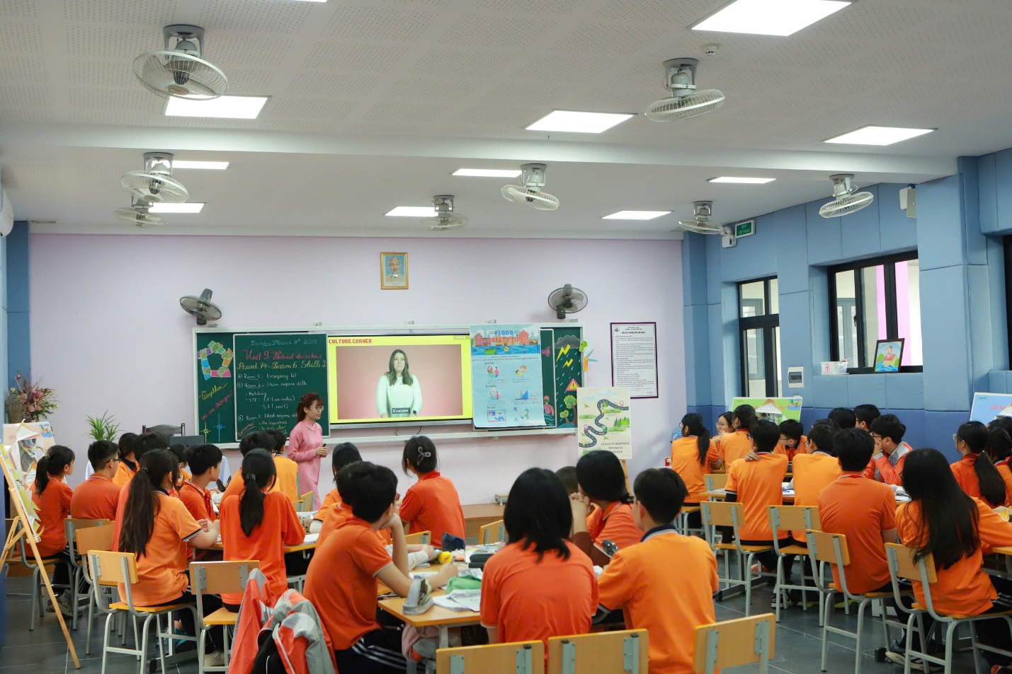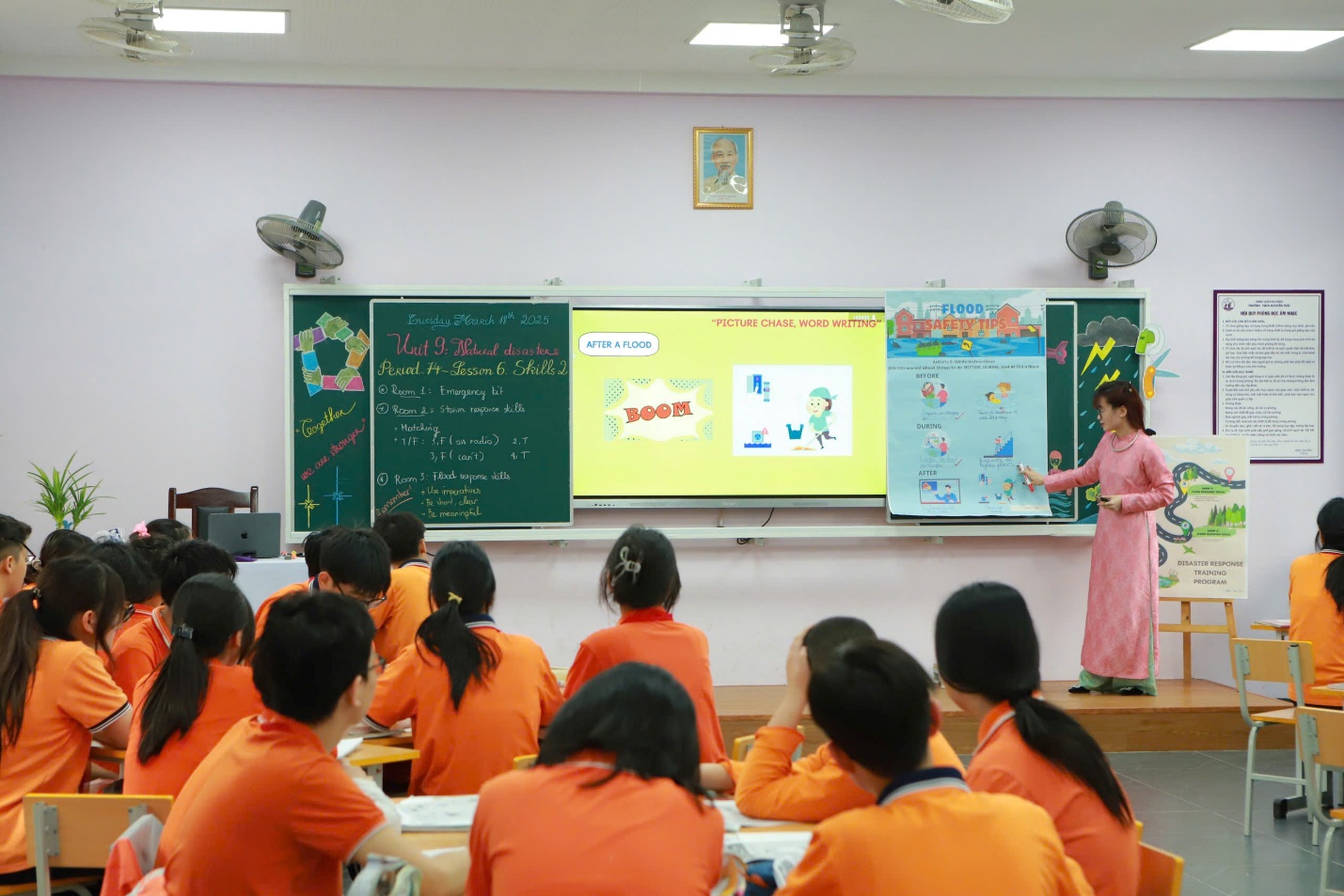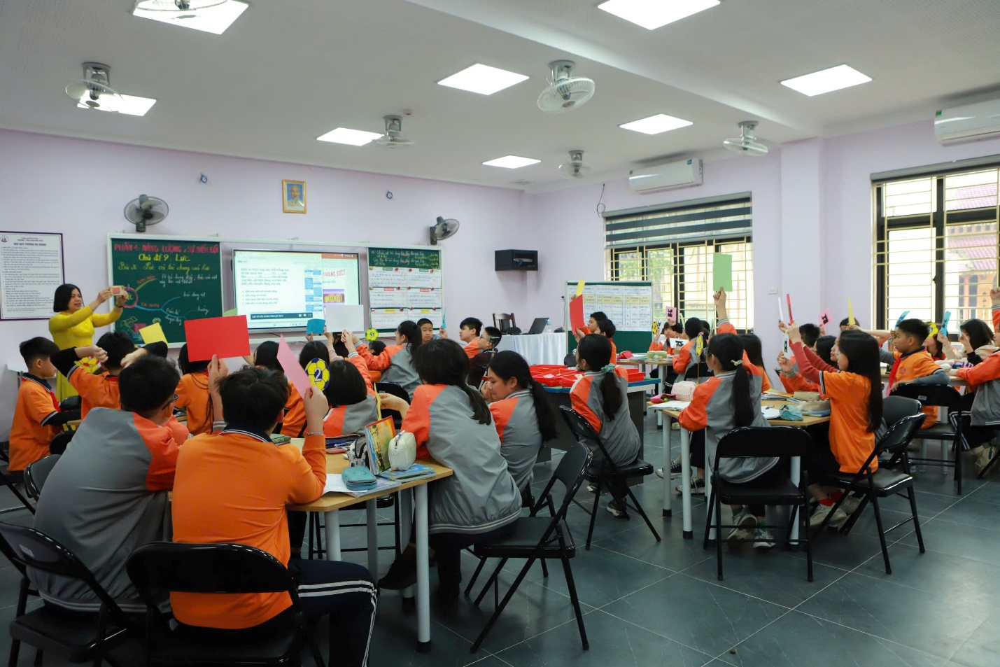 Cô Nguyễn Thị Hồng tự tin, sáng tạo thể hiện tiết Hoạt động trải nghiệm chủ đề 7: Em với thiên nhiên và môi trường, tiết 80: Ứng phó với biến đổi khí hậu. Tiết học không chỉ giúp các em hiểu đúng về thực trạng biến đổi khí hậu đang ảnh hưởng tới toàn cầu mà quan trọng hơn, cô cùng các em học sinh lớp 6A4 đã đưa ra các biện pháp ứng phó hiệu quả, hợp lí trong đời sống. Tiết học hoạt động trải nghiệm còn là cơ hội để học sinh thể hiện sự hiểu biết của bản thân, những mối quan tâm đến các vấn đề môi trường hiện nay. Các em đã hào hứng chia sẻ, trao đổi với nhau về các nội dung bài học qua một loạt hoạt động học tập sáng tạo, hấp dẫn.