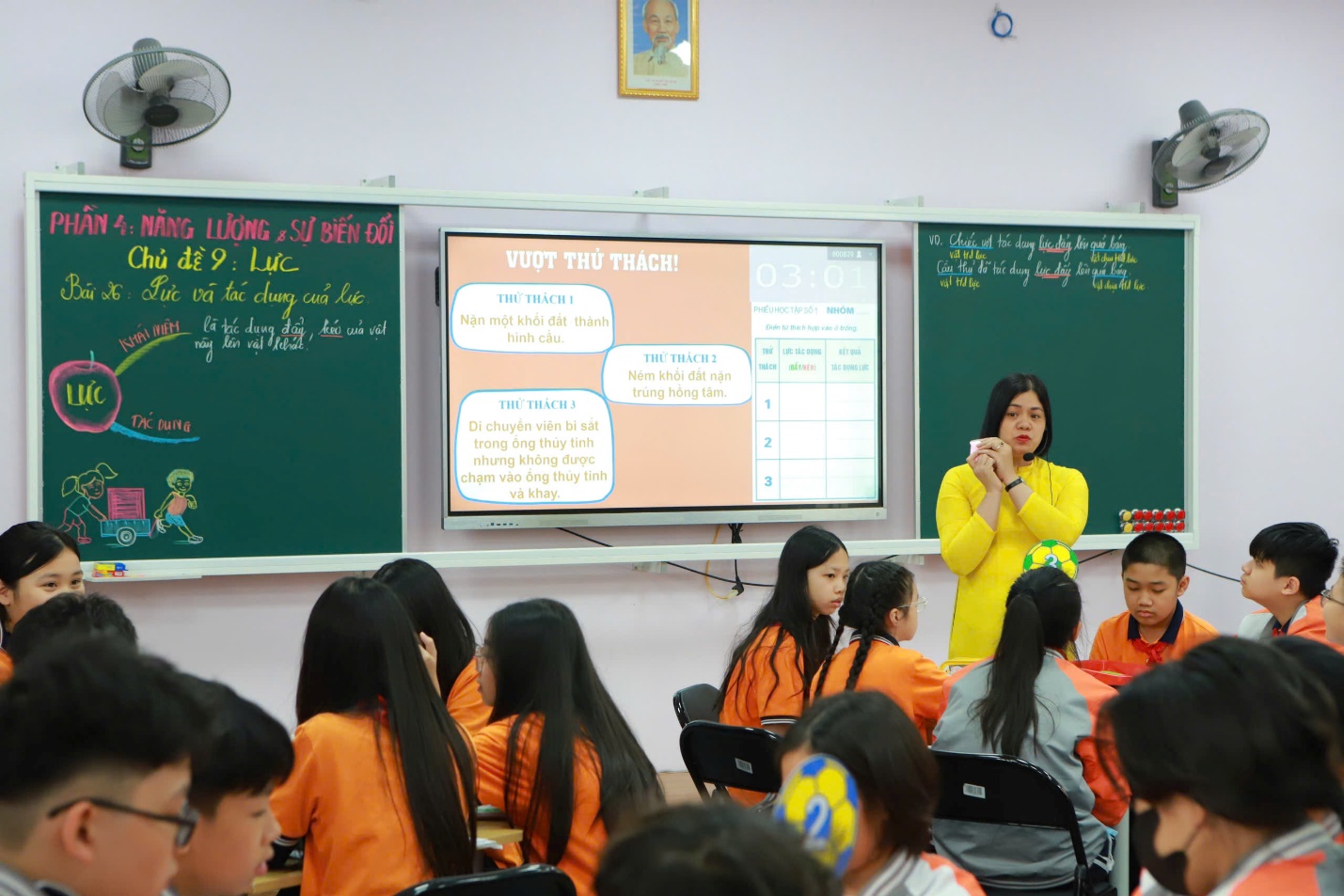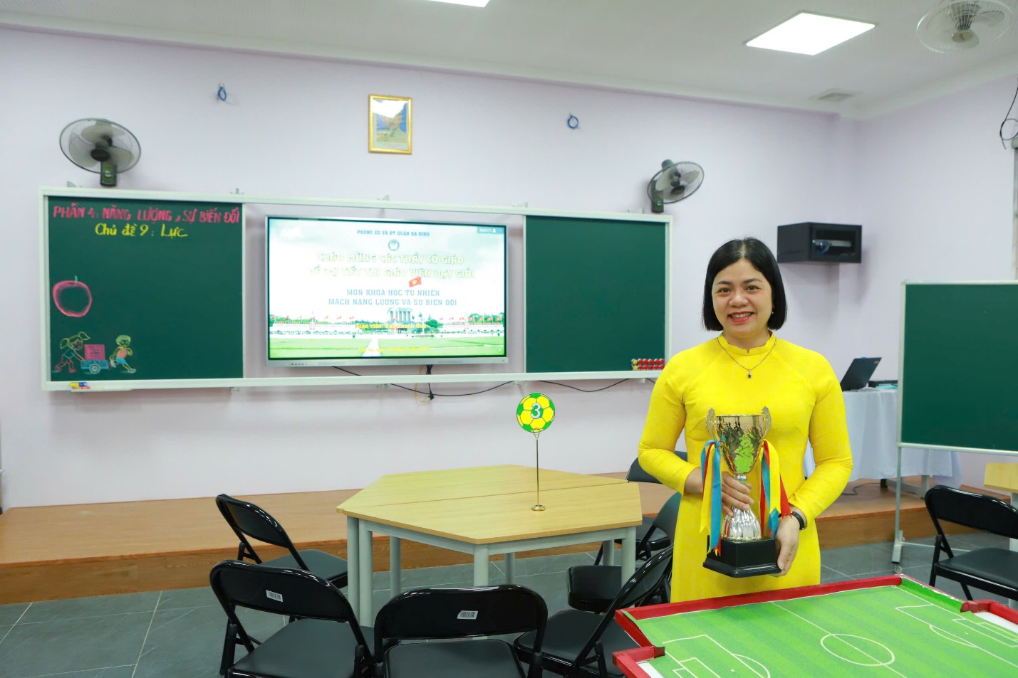Còn cô Đào Thanh Huệ lại mang đến hội thi một tiết dạy thú vị về Lực và tác dụng của lực. Những kiến thức khoa học tự nhiên không dễ tiếp thu được cô khéo léo truyền tải và hướng dẫn qua các hoạt động học tập và phương pháp giảng dạy sáng tạo. Trò chơi thú vị nhất và gay cấn nhất chính là hóa thân thành một cầu thủ chinh phục chiếc cúp vô địch. Bạn học sinh nào cũng hào hứng tham gia và hồi hộp trong từng pha “ghi bàn” hay bỏ lỡ cơ hội. Học khoa học mà vui thế này thì các bạn sẵn sàng học nữa.