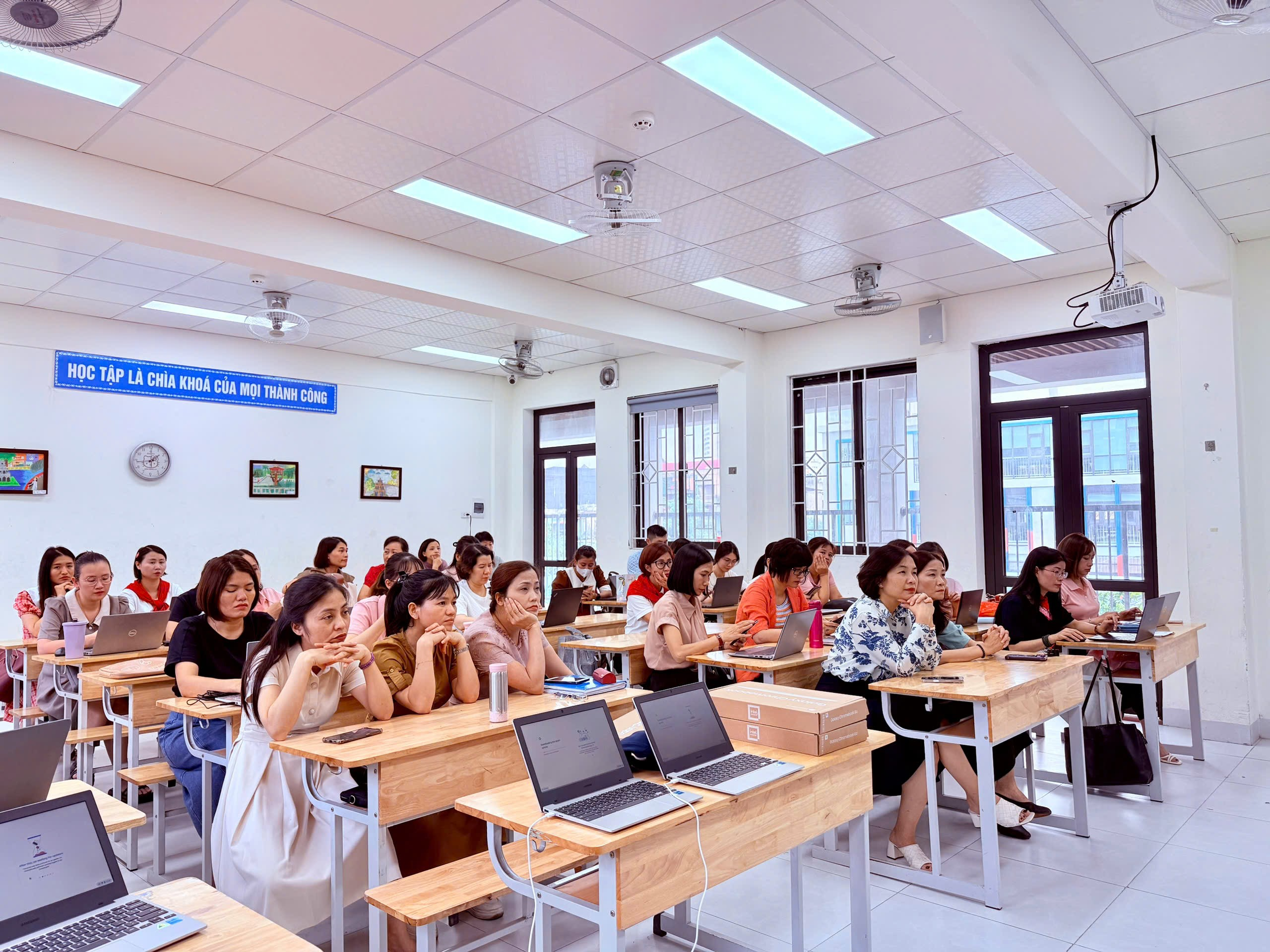 Điểm nhấn đặc biệt của buổi tập huấn lần này là các tiết dạy minh họa theo mô hình “Lớp học số tinh hoa”. Dưới sự đồng hành và hỗ trợ phương tiện từ Công ty Cổ phần Công nghệ Fermat, giáo viên không chỉ trải nghiệm vai trò của học sinh mà còn trực tiếp đứng lớp, thực hành ứng dụng Google Classroom cùng các công cụ số để xây dựng tiết học sinh động, sáng tạo.