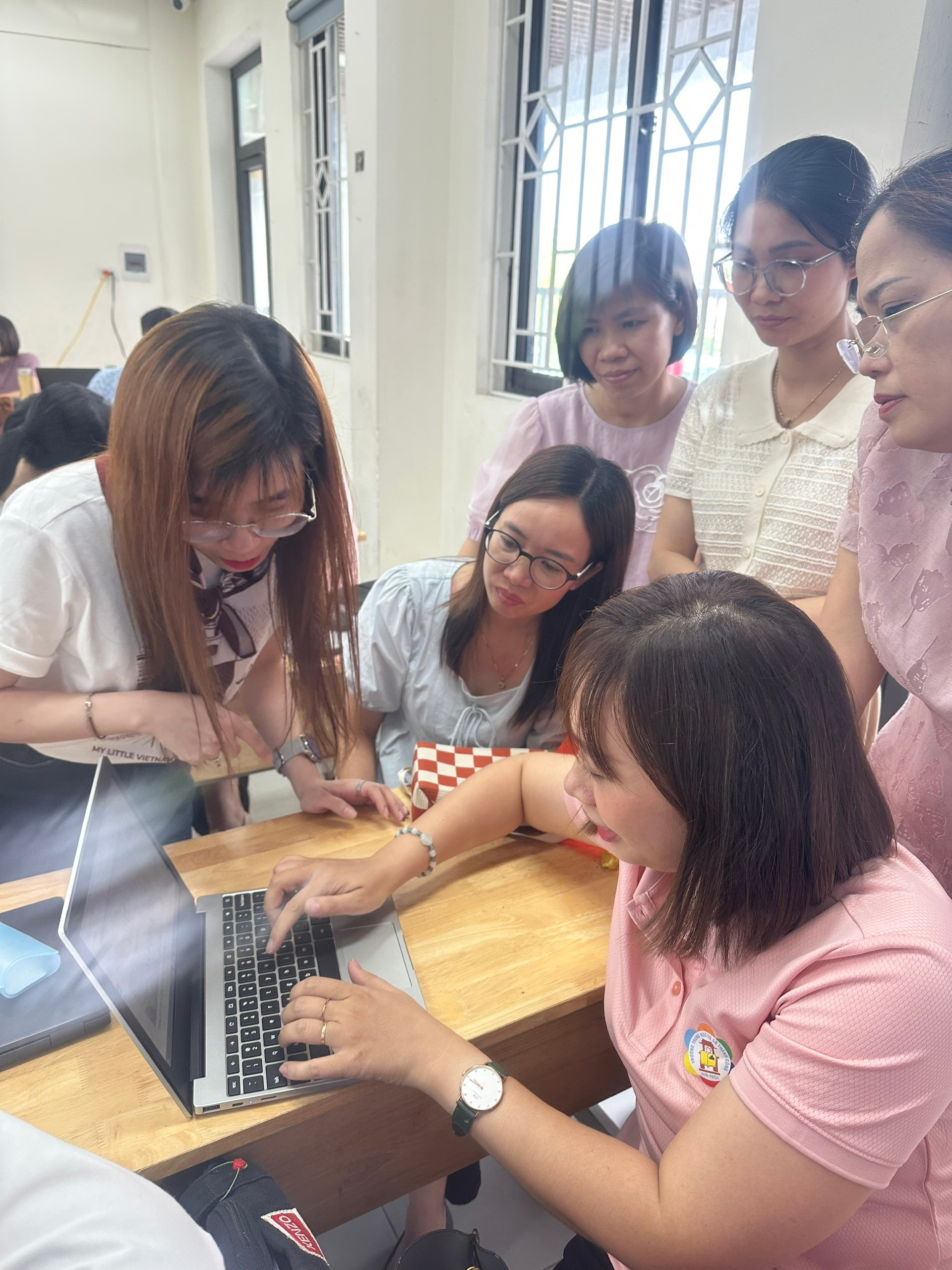 Trong từng tiết học thử nghiệm, các thầy cô vừa là “người kiến tạo” vừa là “người học trải nghiệm”, say sưa vận dụng các ứng dụng số để tổ chức hoạt động, tương tác và khơi gợi tư duy học sinh. Sau mỗi phần giảng dạy, các giáo viên cùng nhau thảo luận, chia sẻ, phân tích những vấn đề nảy sinh từ thực tế lớp học, qua đó đưa ra các giải pháp thiết thực. Chính những người trực tiếp đứng lớp đã trở thành “người hướng dẫn đồng nghiệp”, tạo nên một buổi trao đổi chuyên môn gần gũi, hiệu quả và giàu tính thực tiễn.