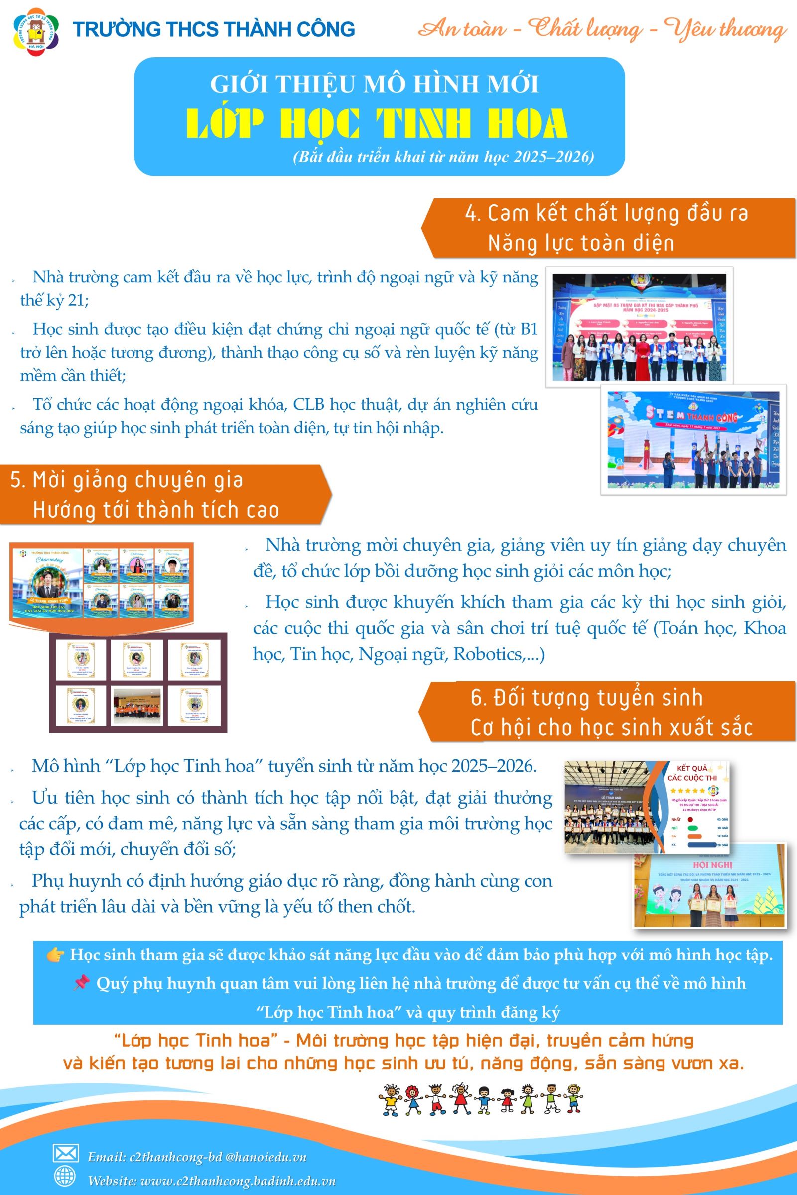 📌 Quý phụ huynh quan tâm vui lòng liên hệ nhà trường để được tư vấn cụ thể về mô hình “Lớp học Tinh hoa” và quy trình đăng ký.