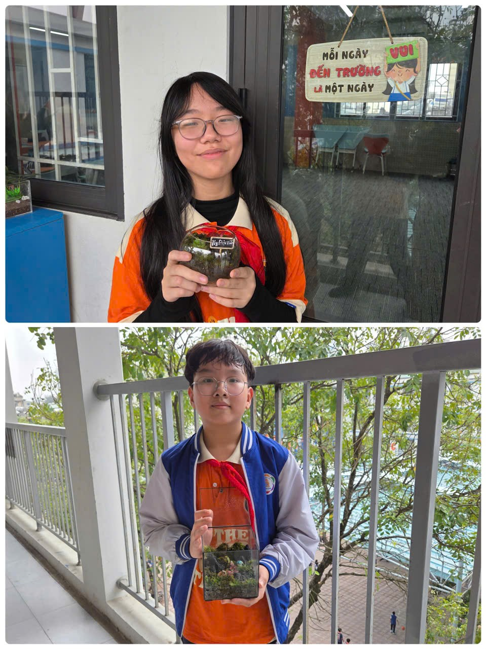 Dưới sự hướng dẫn tận tình của cô Phương, GVCN cũng là GV môn KHTN của lớp, từng bạn đã khéo léo lựa chọn cây, sắp xếp tiểu cảnh, thêm những chi tiết trang trí nhỏ như ngôi nhà bé xíu, chiếc cầu gỗ hay chú thú mini đáng yêu. Mỗi lọ terrarium hoàn thành đều mang dấu ấn riêng – có bạn yêu phong cách rừng nhiệt đới, có bạn lại thích khu vườn cổ tích mộng mơ.