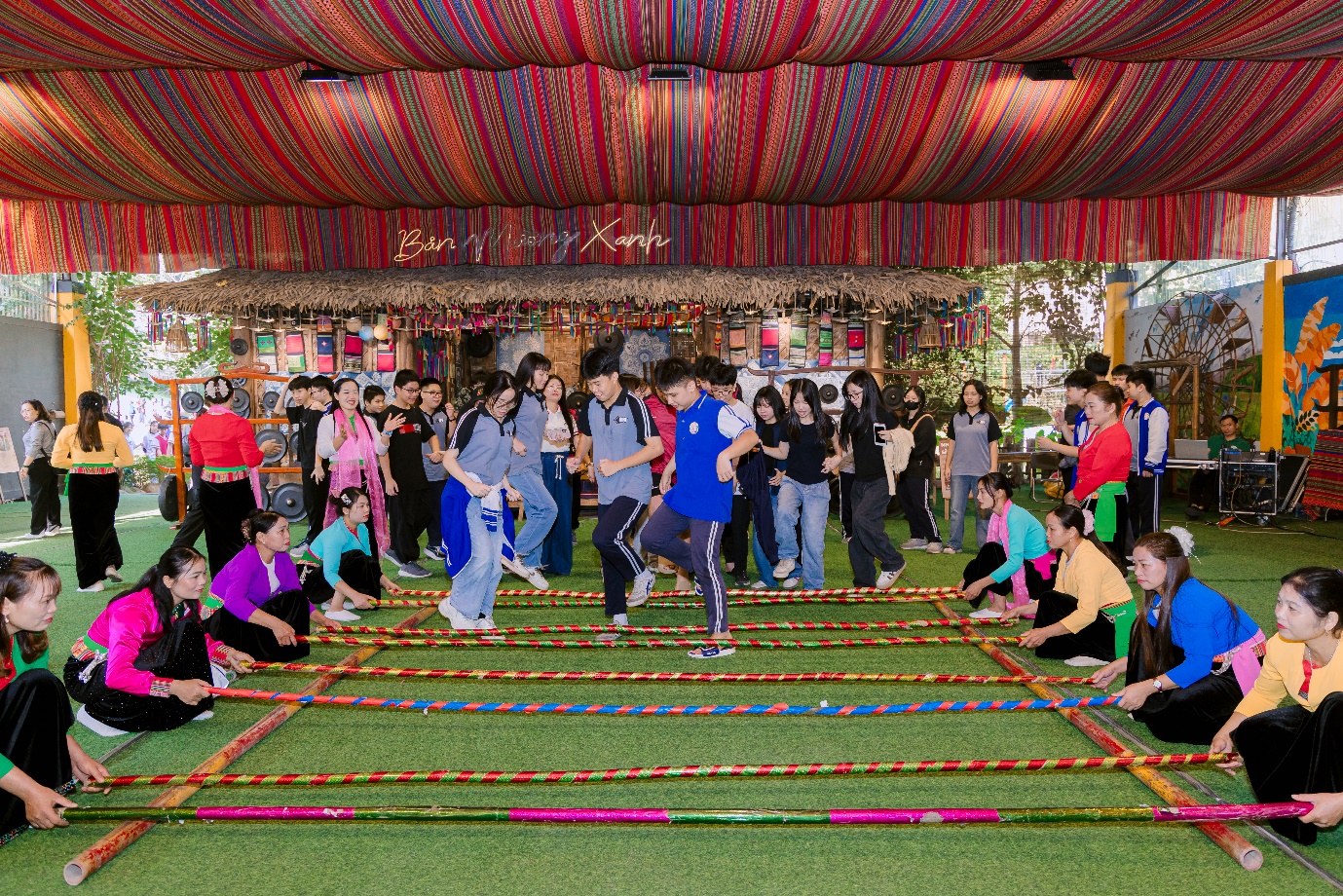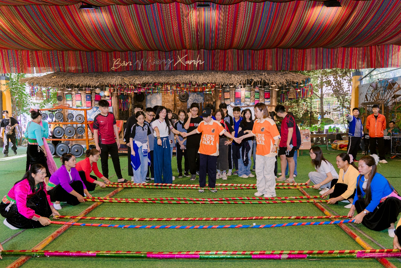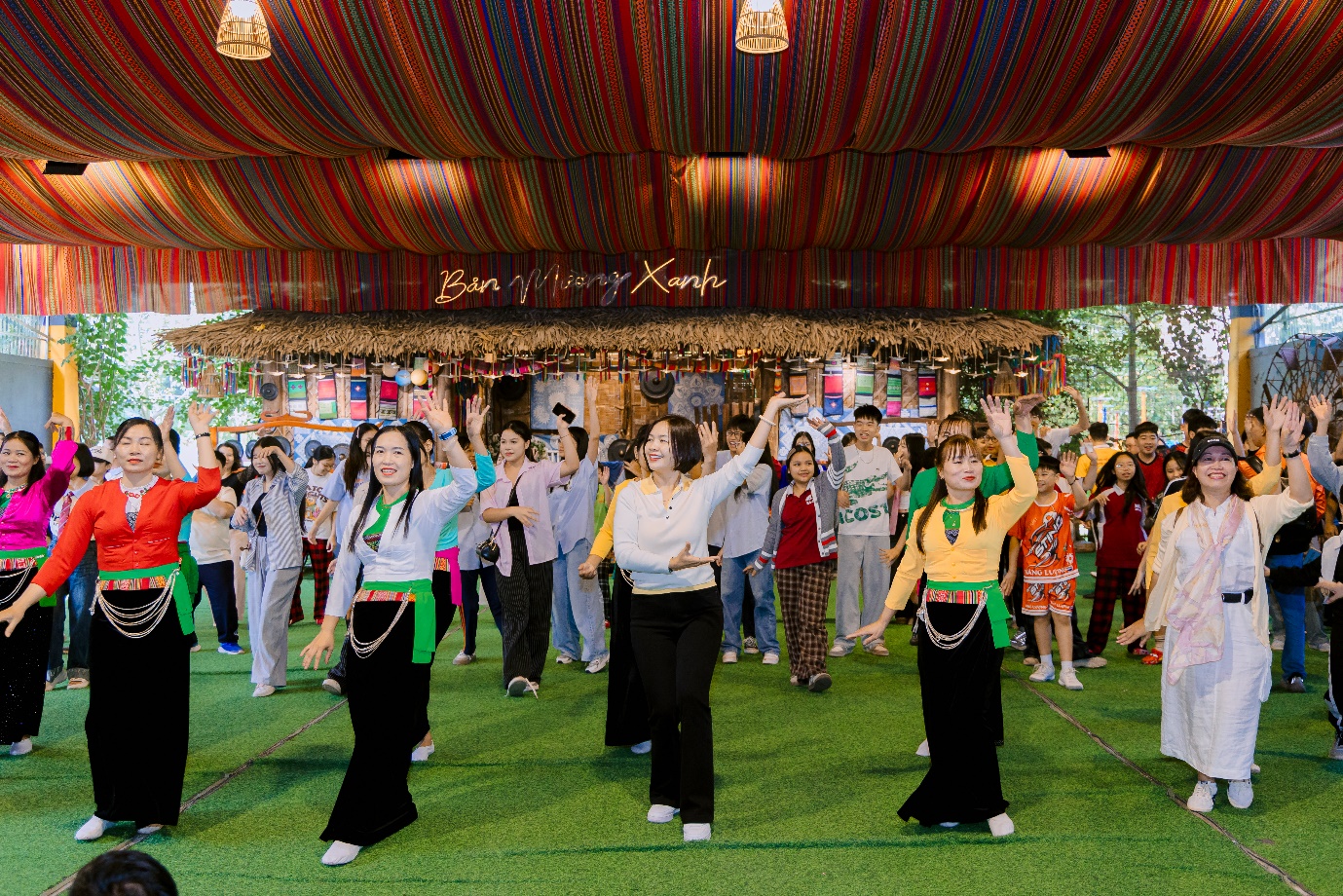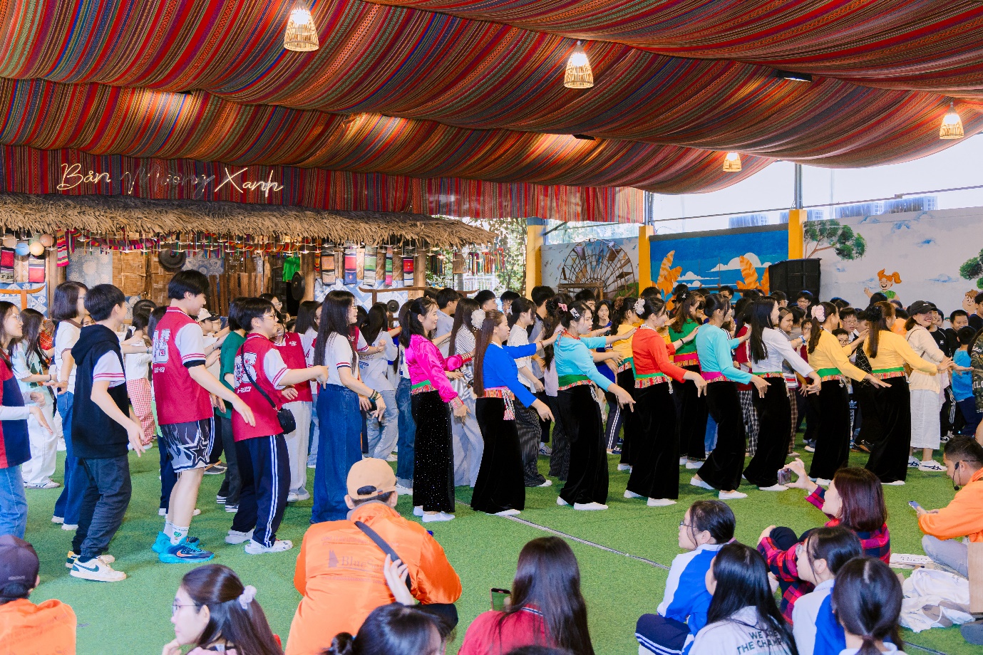 Đến với Bản Mường Xanh là cơ hội tuyệt vời để các em tìm hiểu về cấu trúc, ý nghĩa và vai trò của ngôi nhà sàn truyền thống trong đời sống văn hóa của đồng bào. Đồng thời, điệu nhảy sạp truyền thống đã thu hút các thầy cô giáo, các phụ huynh và đông đảo các em học sinh hào hứng tham gia. Dưới sự hướng dẫn của các anh chị dân tộc Mường, những bước nhảy nhanh, chậm, dồn dập cùng tiếng gõ sạp rộn ràng đã tạo nên một vũ điệu tập thể ngập tràn tiếng cười, nơi mọi rào cản về tuổi tác, lớp học đều tan biến.