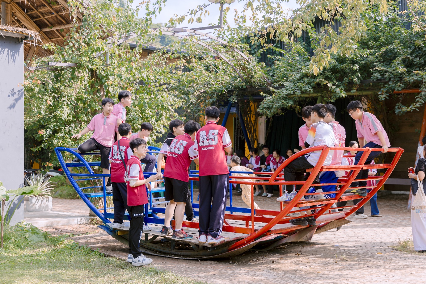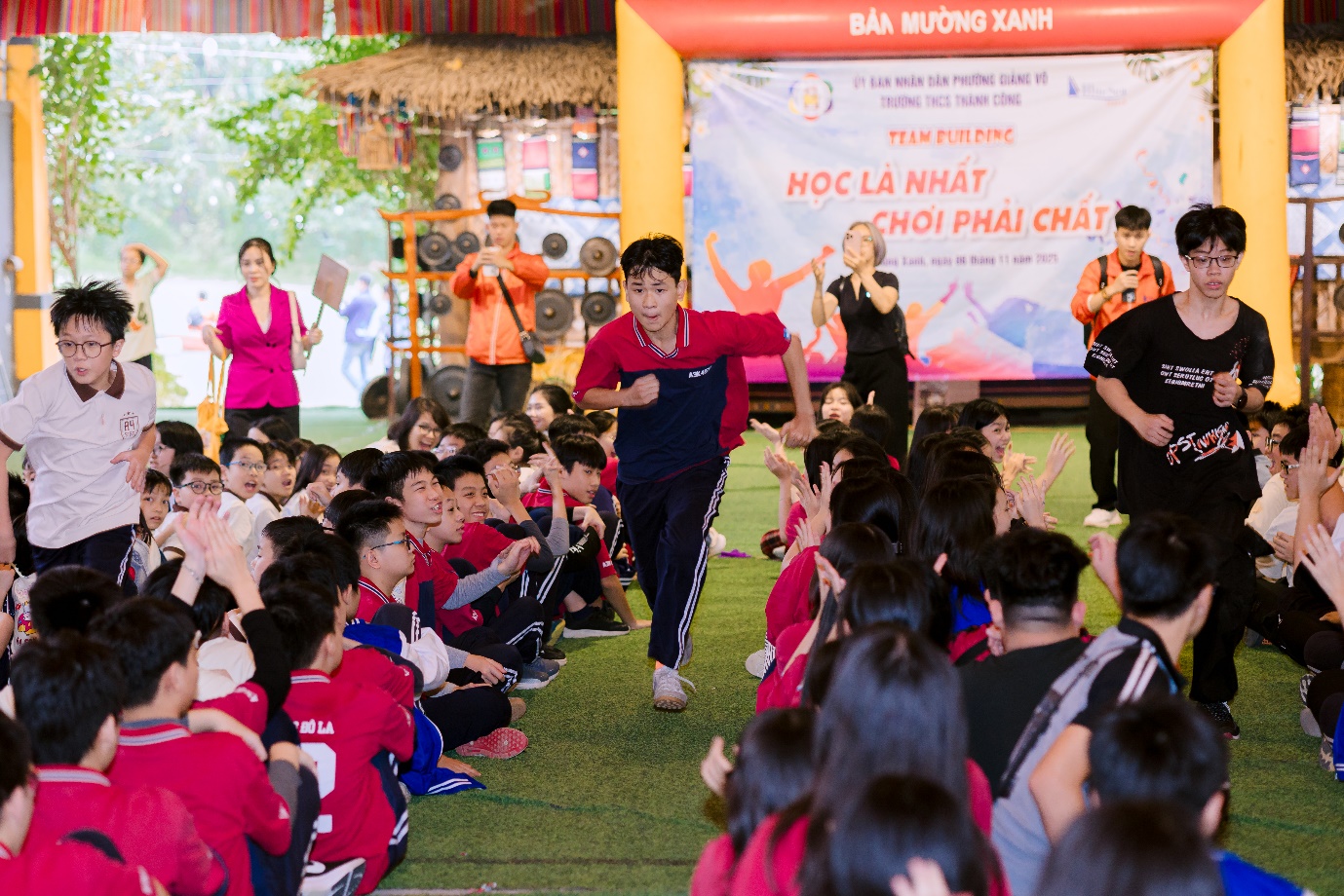 Bên cạnh các hoạt động tìm hiểu văn hóa, học sinh THCS Thành Công còn tham gia nhiệt tình vào các trò chơi vận động và thử thách liên hoàn, các trò chơi Teambuilding sống động. Thông qua các trò chơi, các em được vận động, giải tỏa năng lượng sau những giờ học căng thẳng, phối hợp nhịp nhàng, tin tưởng lẫn nhau để cùng vượt qua thử thách, từ đó củng cố tình bạn và kỹ năng làm việc nhóm. Những tiếng cười giòn tan, những khoảnh khắc "quên mình" vì đồng đội đã làm nên một ngày trải nghiệm thật đáng nhớ.