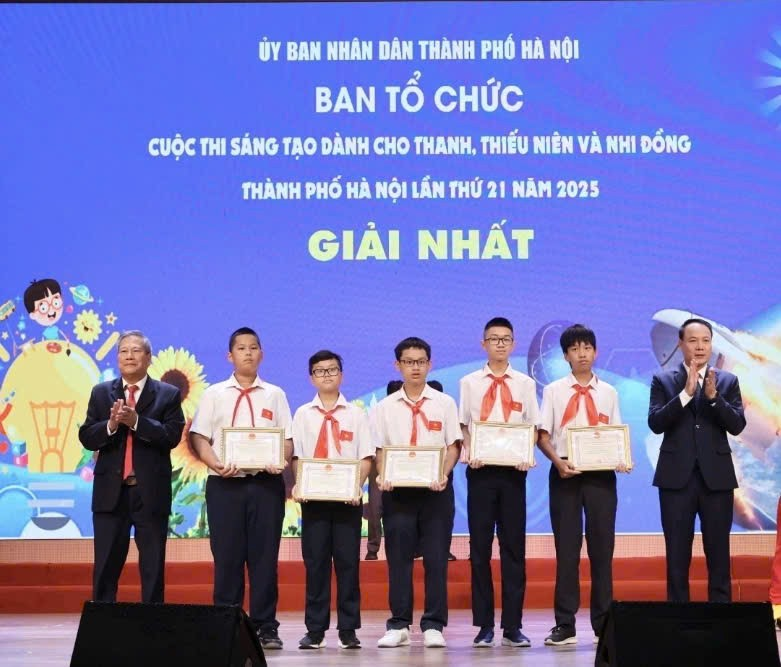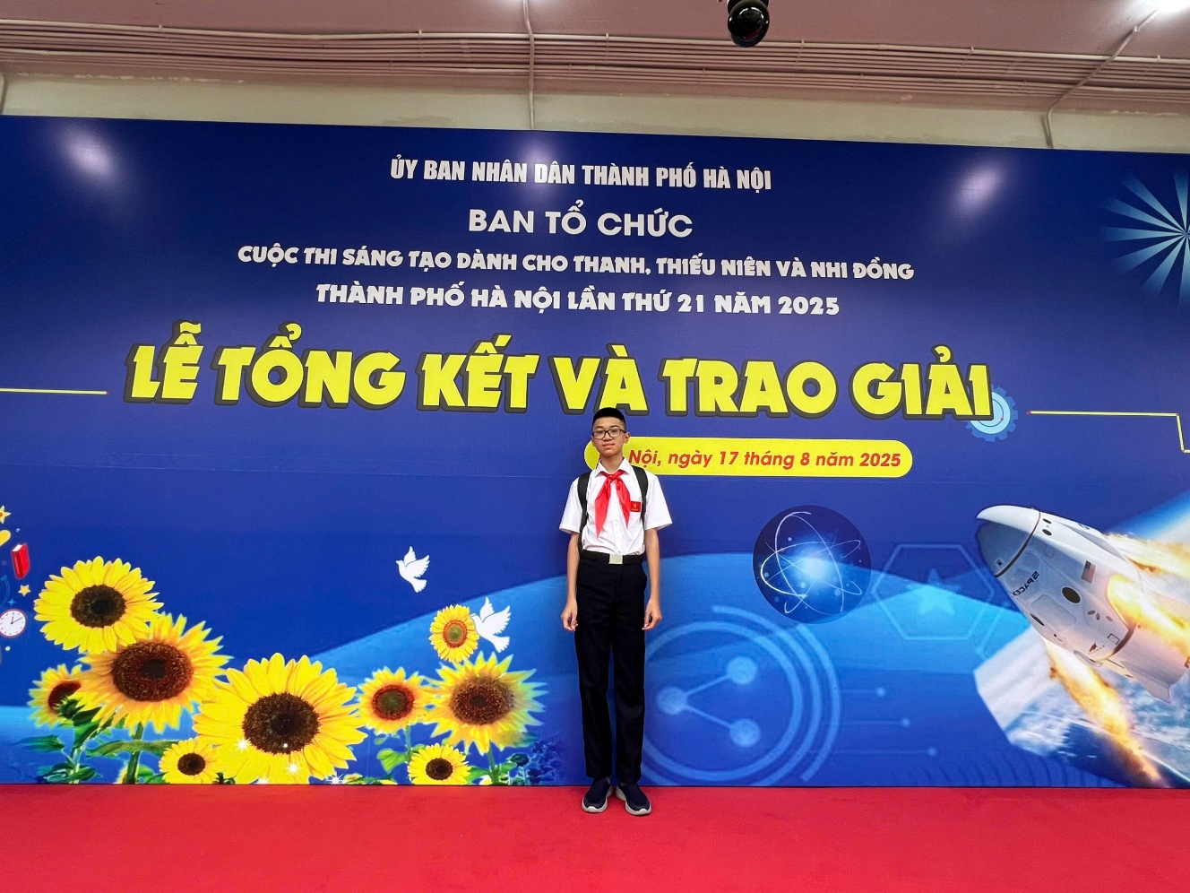 Với sự nỗ lực không ngừng nghỉ, niềm đam mê sáng tạo mãnh liệt cùng sự đồng hành tận tâm của các thầy cô giáo, học sinh Lâm An Khánh - lớp 8A3, trường THCS Thành Công (năm học 2024 - 2025) cùng nhóm bạn của mình ở một số trường THCS khác đã xuất sắc giành giải Nhất tại cuộc thi "Sáng tạo dành cho thanh thiếu niên nhi đồng Thành phố Hà Nội" lần thứ 21 năm 2025 với đề tài mang tính đột phá: "Robot thu gom váng dầu kết hợp quan trắc chất lượng nước".