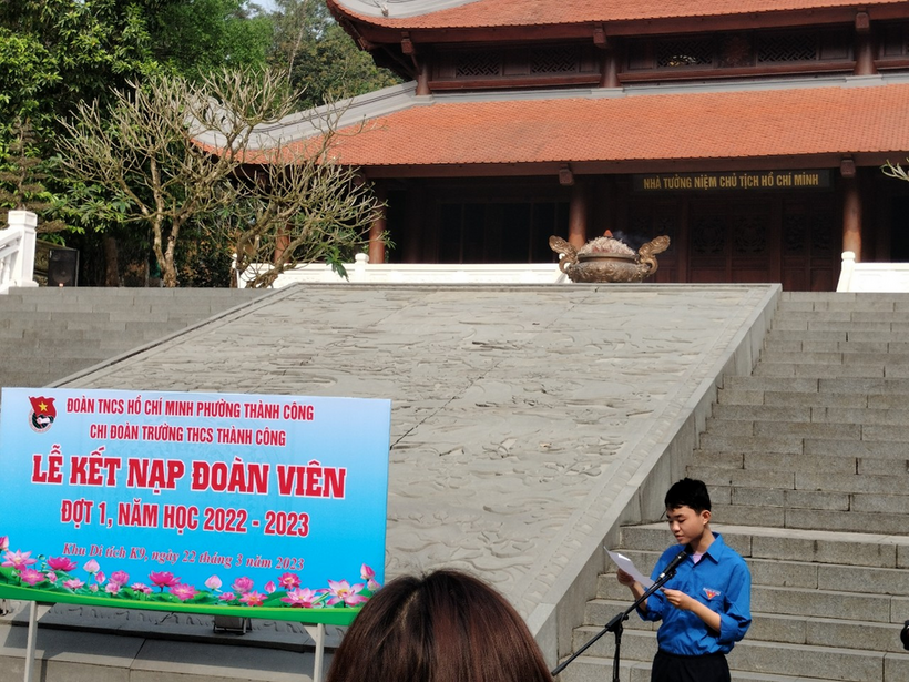 Thực hiện chương trình công tác Đoàn và phong trào thanh thiếu nhi năm 2023, nhằm tạo khí thế thi đua sôi nổi và thể hiện trách nhiệm của tuổi trẻ thiết thực lập thành tích chào mừng 92 năm ngày thành lập Đoàn TNCS Hồ Chí Minh (26/3/1931-26/3/2023), sáng ngày 22/3/2023, Chi đoàn TNCS Hồ Chí Minh Trường Trung học cơ sở Thành Công phối hợp với Đoàn phường Thành Công, tổ chức Lễ kết nạp Đoàn cho 48 học sinh đợt 1 của nhà trường tại khu di tích K9 Đá Chông - một địa chỉ đỏ linh thiêng thuộc xã Minh Quang, huyện Ba Vì.