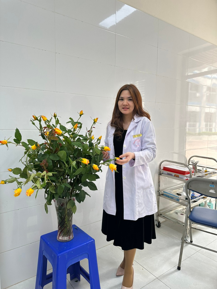 Cô Kim Ngân - cán bộ y tế của trường THCS Thành Công