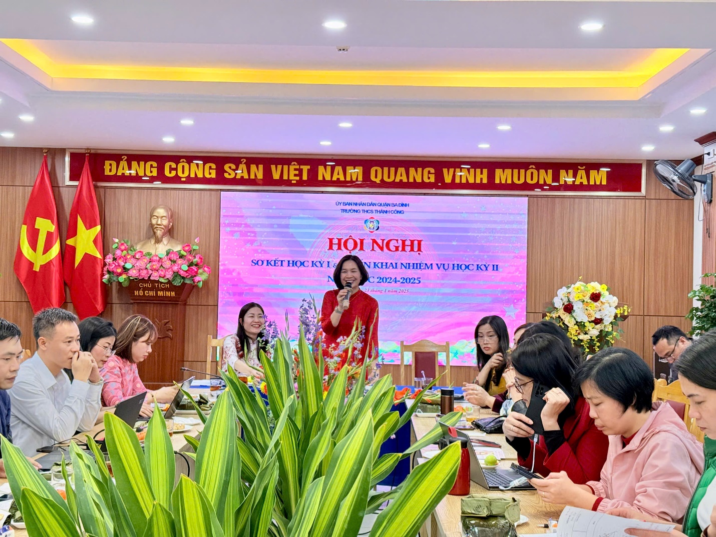 Một nội dung quan trọng tiếp theo của hội nghị là kế hoạch của học kì II đã được thông qua hội đồng một cách đầy đủ, chi tiết thể hiện rõ sự quan tâm, lãnh đạo, chỉ đạo sâu sát và kịp thời của Ban Giám hiệu nhà trường về mọi mặt.