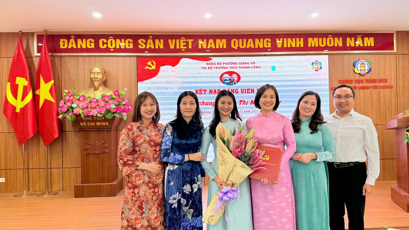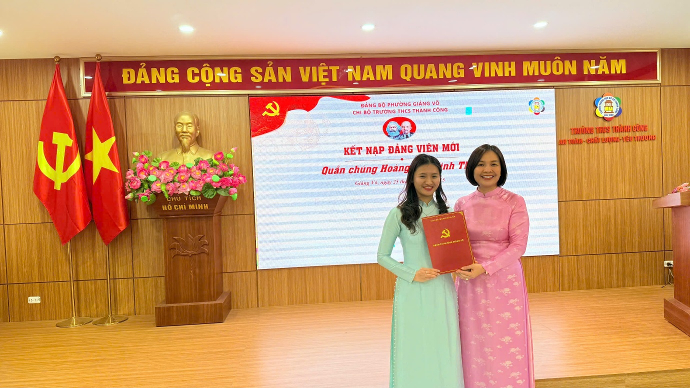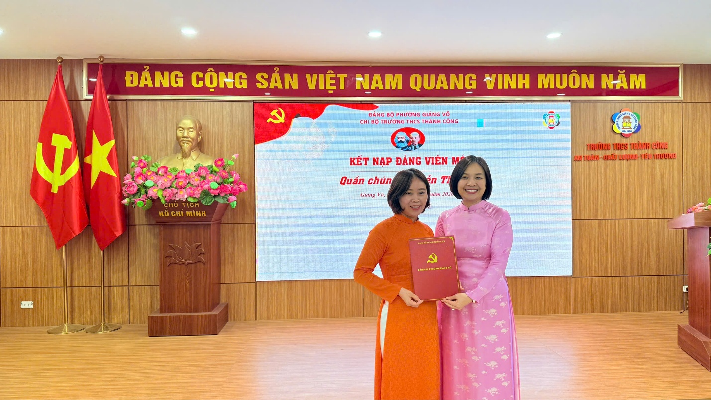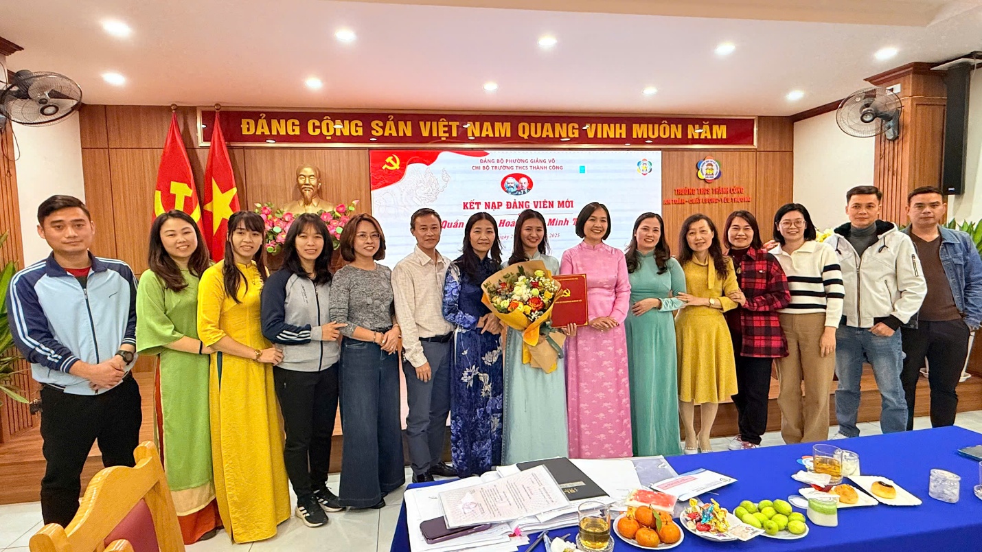 Công tác bồi dưỡng, tạo nguồn và kết nạp đảng viên mới luôn được Chi bộ Trường THCS Thành Công đặc biệt quan tâm và xác định là nhiệm vụ thường xuyên. Việc giáo viên trẻ vinh dự được kết nạp vào Đảng đã khẳng định tinh thần trách nhiệm, ý thức tu dưỡng, rèn luyện và không ngừng phấn đấu của mỗi đồng chí. Đây chính là những tấm gương tiêu biểu, góp phần lan tỏa động lực để đội ngũ giáo viên trẻ của Trường THCS Thành Công học tập và noi theo.