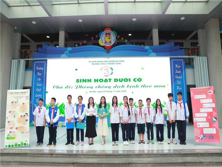 Chủ đề sinh hoạt dưới cờ do lớp 8A2 và 7A2 phụ trách thật thiết thực và ý nghĩa với mỗi người đặc biệt là các bạn học sinh. Thông qua buổi sinh hoạt này, Trường THCS Thành Công hy vọng các em sẽ nhận thức được tầm quan trọng của việc phòng chống dịch bệnh theo mùa, tự biết chăm sóc và bảo vệ sức khỏe bản thân; góp phần tạo nên một môi trường học tập an toàn và lành mạnh.