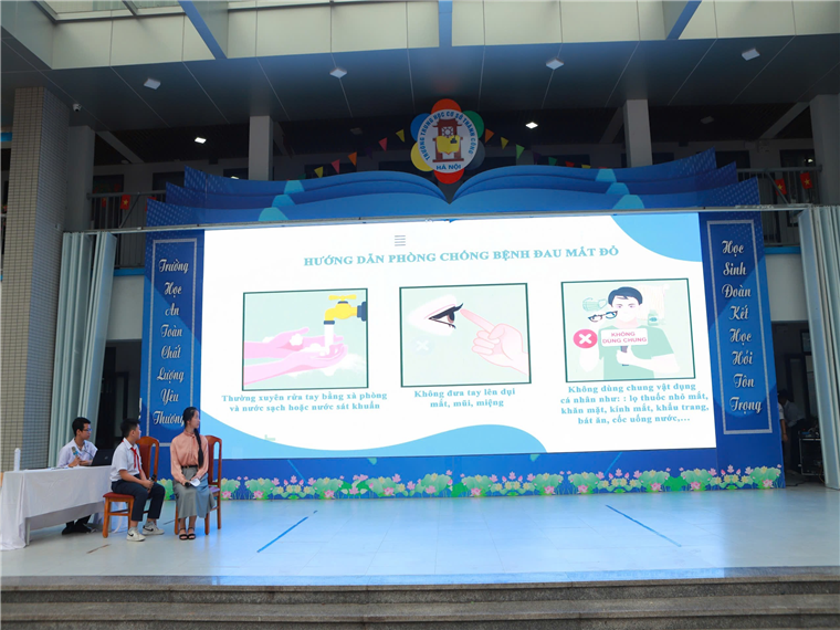 Tại buổi sinh hoạt, chi đội 8A2 và 7A2 đã mang đến một tiểu phẩm hấp dẫn với màn hóa trang thành các nhân vật: bác sĩ, bệnh nhân, người thân…Thông qua tiểu phẩm, các bạn đã khéo léo lồng ghép những thông tin bổ ích về bệnh đau mắt đỏ và sốt xuất huyết. Với cách truyền tải thông điệp gần gũi, dễ hiểu, tiểu phẩm mà hai lớp 8A2 và 7A2 đã giúp người xem biết về nguyên nhân, triệu chứng và cách phòng chống dịch bệnh theo mùa khi thời tiết thay đổi.