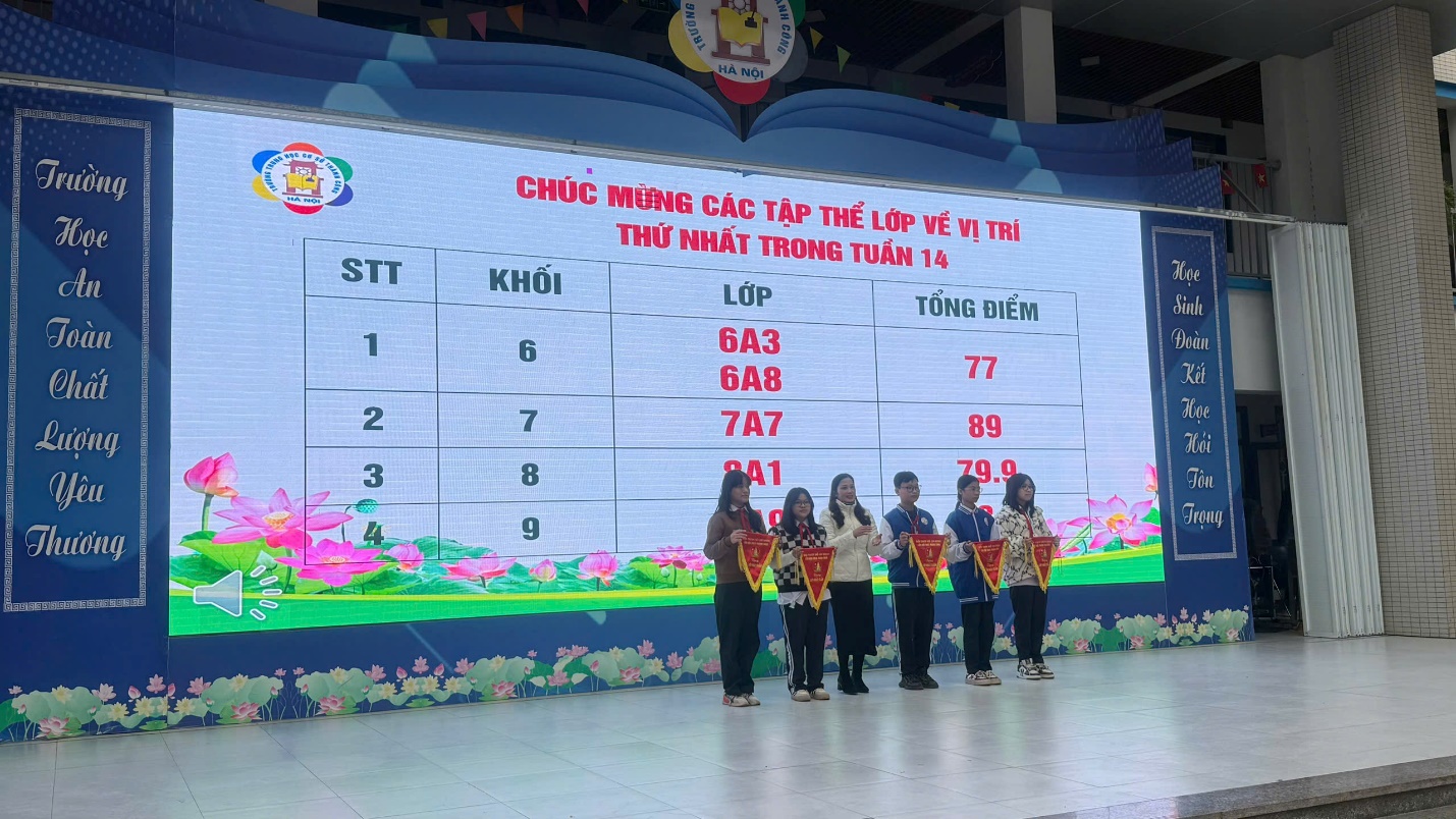 Ban Giám hiệu trao cờ thi đua hàng tuần cho các tập thể về vị trí thứ nhất trong tuần 14.