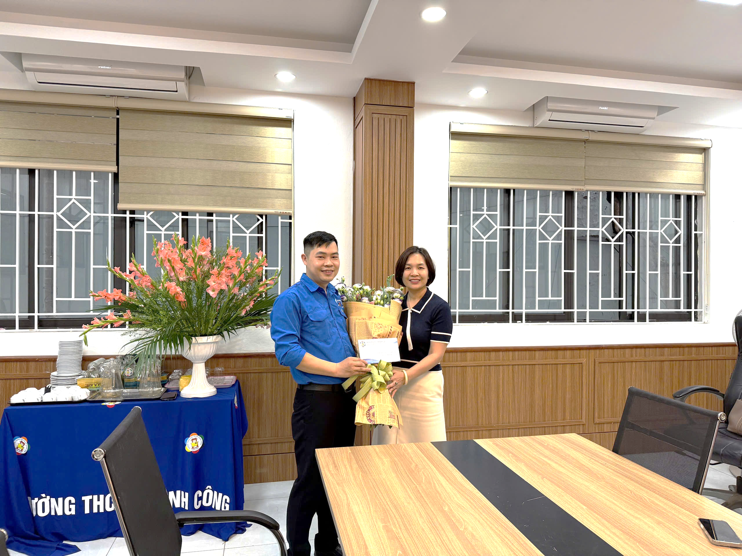 Tại buổi gặp mặt, trong không khí ấm áp, trang trọng, nhà giáo Nguyễn Ngọc Anh - Bí thư chi bộ, Hiệu trưởng nhà trường đã trao tặng hoa và gửi lời chúc mừng tốt đẹp nhất tới đồng chí Phạm Thanh Tùng – Bí thư Chi đoàn - cùng tập thể Chi đoàn giáo viên. Đồng thời, nhà trường ghi nhận và đánh giá cao những đóng góp tích cực, hiệu quả của Chi đoàn trong các hoạt động giáo dục, phong trào thi đua và công tác xây dựng môi trường học đường năng động, sáng tạo.