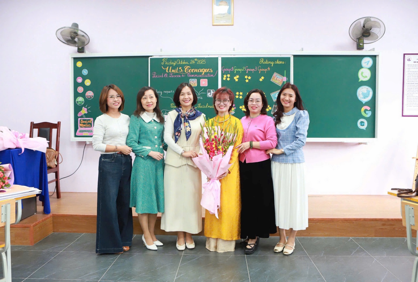 Cô giáo Nguyễn Thị Khánh Linh sau tiết dạy thi Giáo viên giỏi cấp Thành phố môn Tiếng Anh