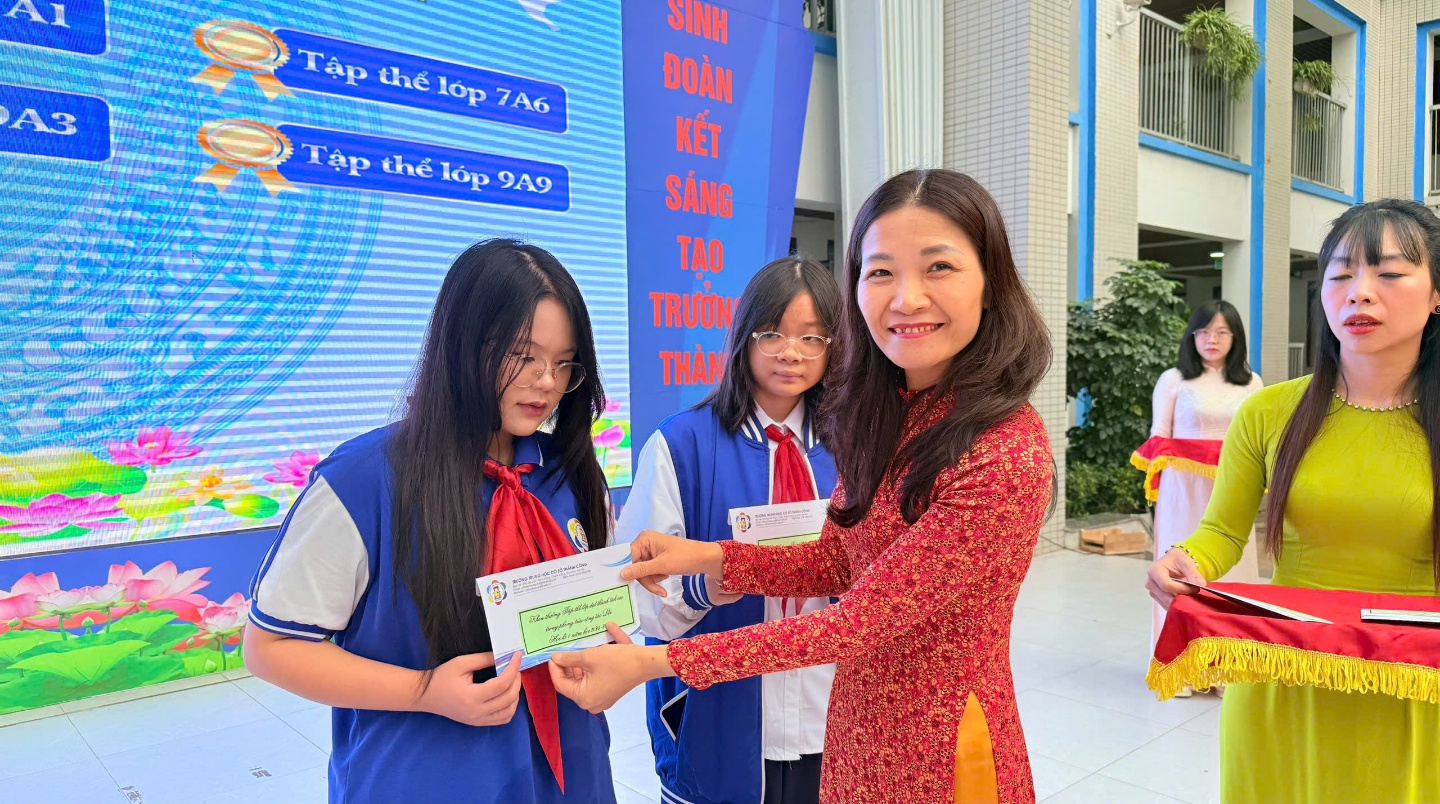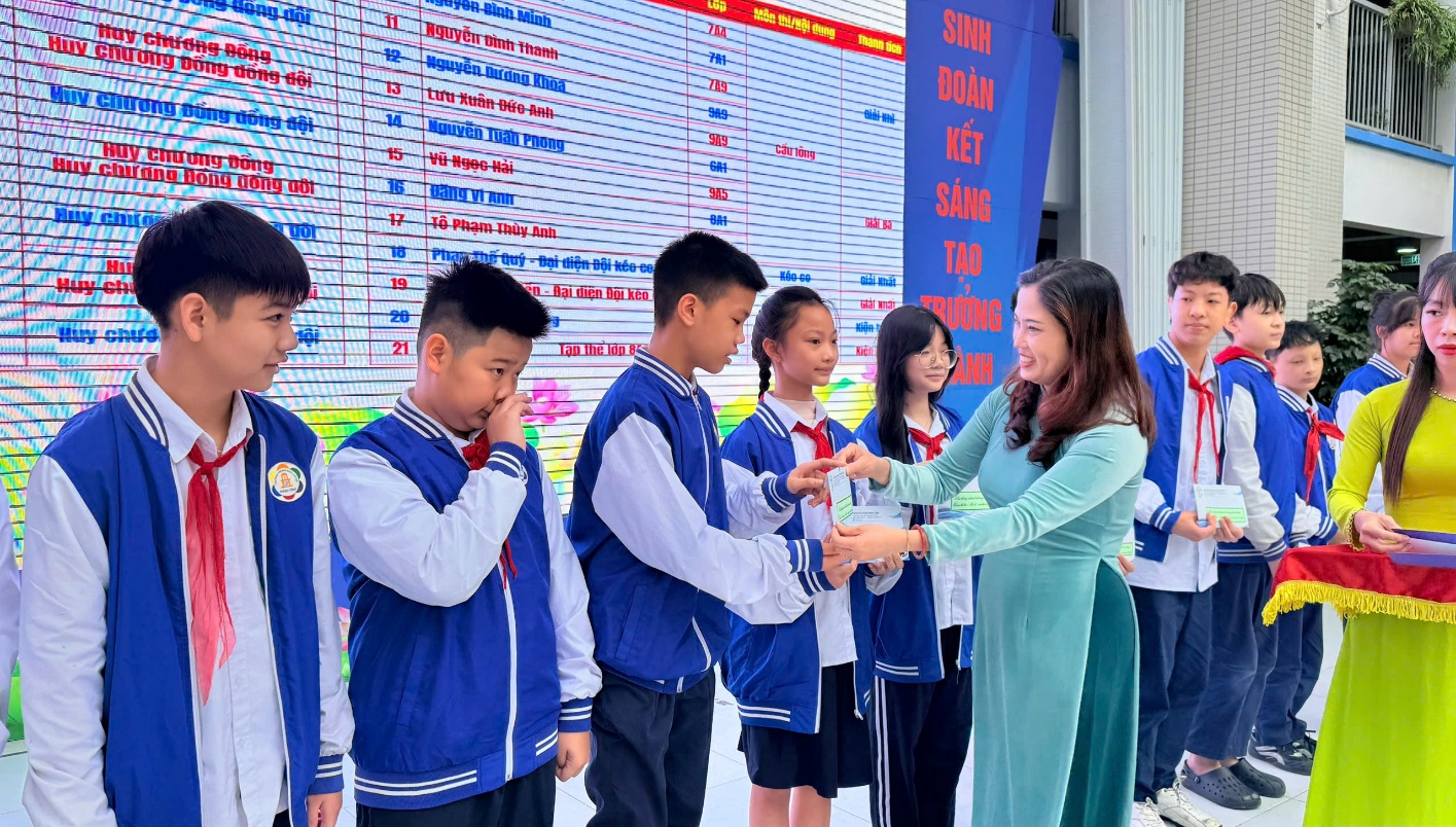 Cô Phó Hiệu trưởng Trần Quỳnh Hương trao thưởng cho các cá nhân, tập thể đạt thành tích cao trong công tác Đội và phong trào thi đua