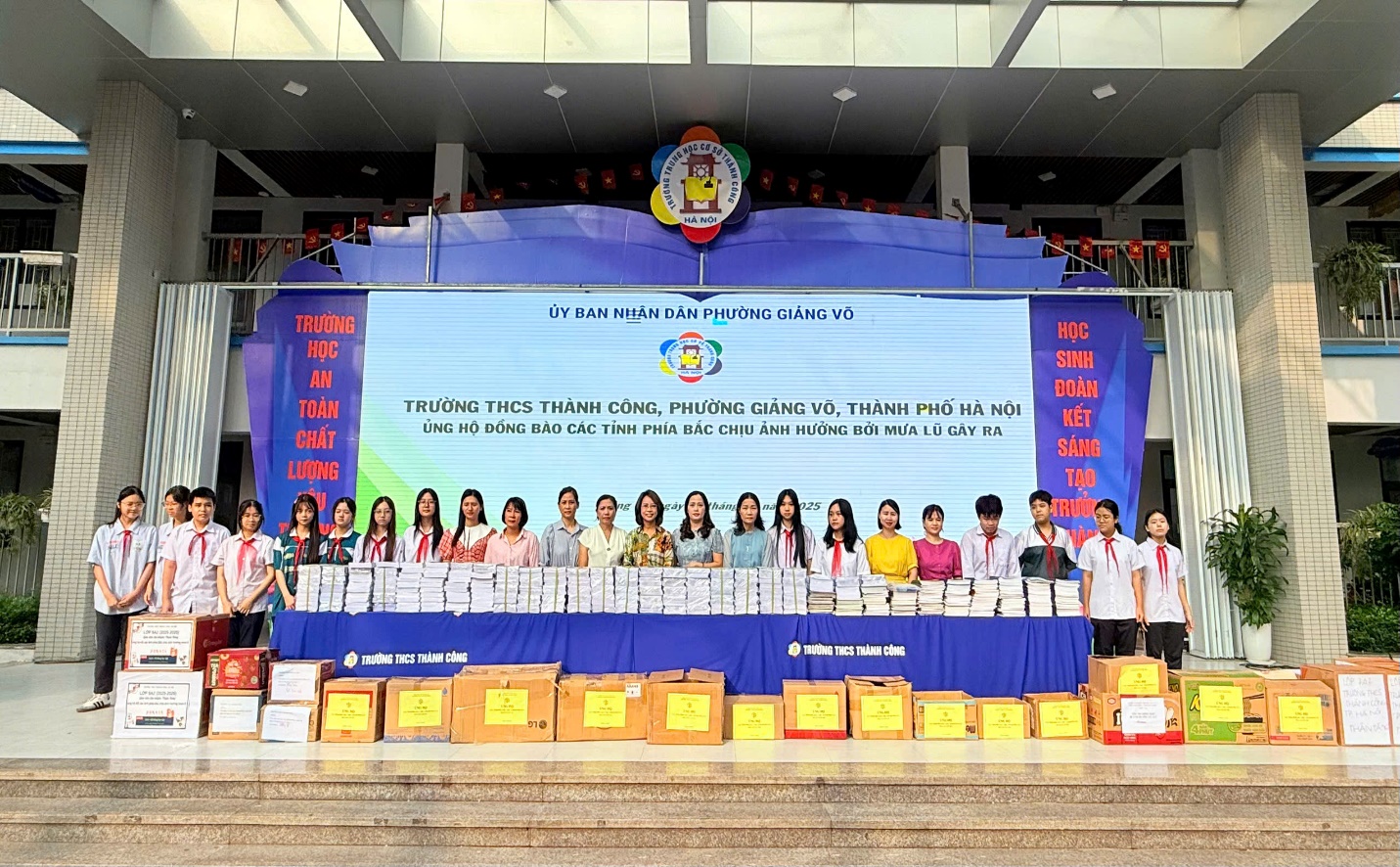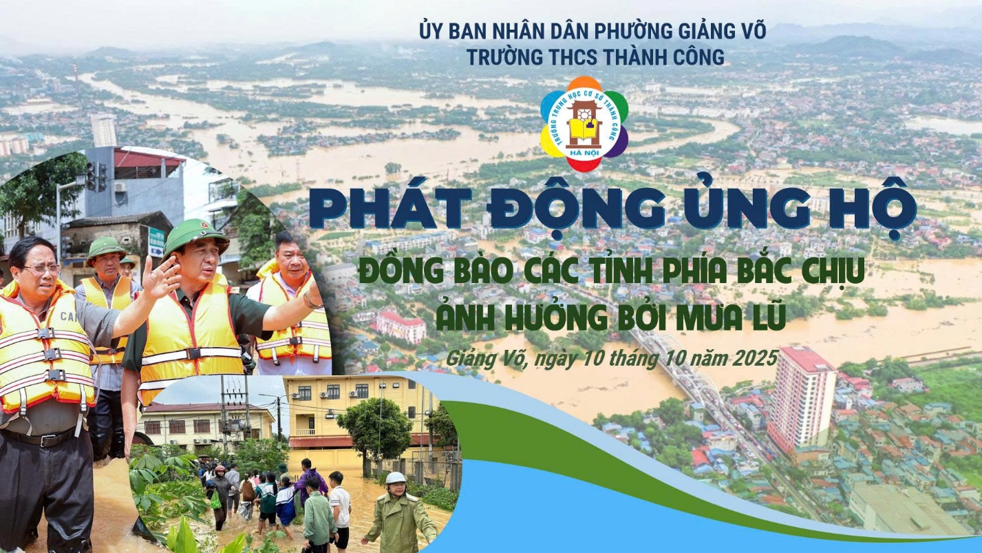 Những ngày đầu tháng 10 năm 2025, cơn bão số 11 – Matmo đổ bộ vào các tỉnh phía Bắc đã gây ra thiệt hại nặng nề về người và tài sản, khiến cuộc sống của nhiều hộ dân rơi vào cảnh khó khăn. Hướng về đồng bào các tỉnh phía Bắc đang gồng mình khắc phục hậu quả mưa lũ, trường THCS Thành Công đã kịp thời phát động chương trình ủng hộ đồng bào, thể hiện tinh thần nhân ái, sẻ chia vốn là truyền thống tốt đẹp của thầy và trò nhà trường.
