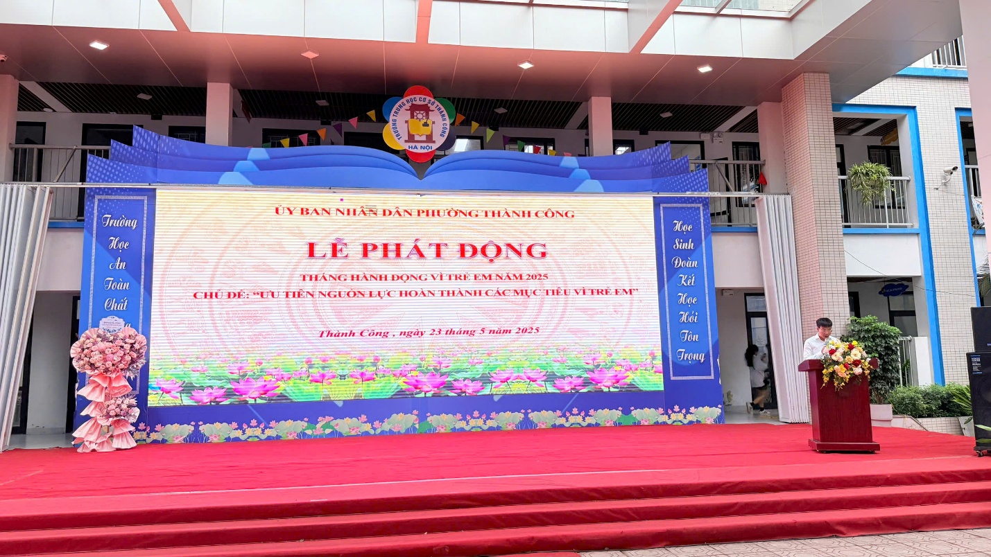 Ông Ngô Ngọc Lâm – Phó bí thư Đảng ủy, Chủ tịch phường Thành Công phát động Tháng hành động vì trẻ em năm 2025 với chủ đề “Ưu tiên nguồn lực hoàn thành các mục tiêu vì trẻ em”.