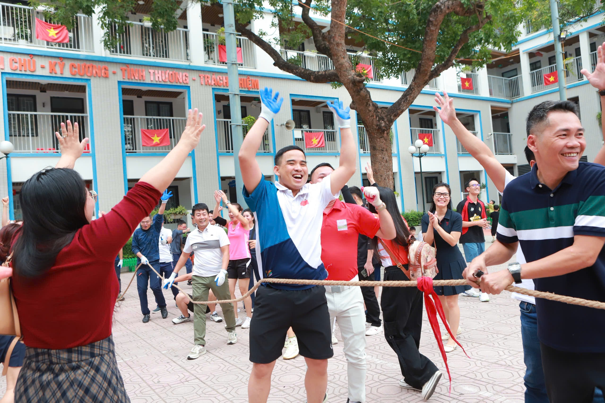 Đây không chỉ là những trận đấu, đây là những bài ca về sức mạnh tập thể và sự thân thiện gắn kết các thầy cô và các phụ huynh học sinh. Sau những phút giây căng thẳng, kịch tích, đấu trí, đấu lực từng milimet trên dây kéo dù bên nào là đội chiến thắng cả sân trường đều hò reo hân hoan và tràn ngập tiếng cười trong một tình thân mến vô tư, trong sáng và rất đỗi chân thành.