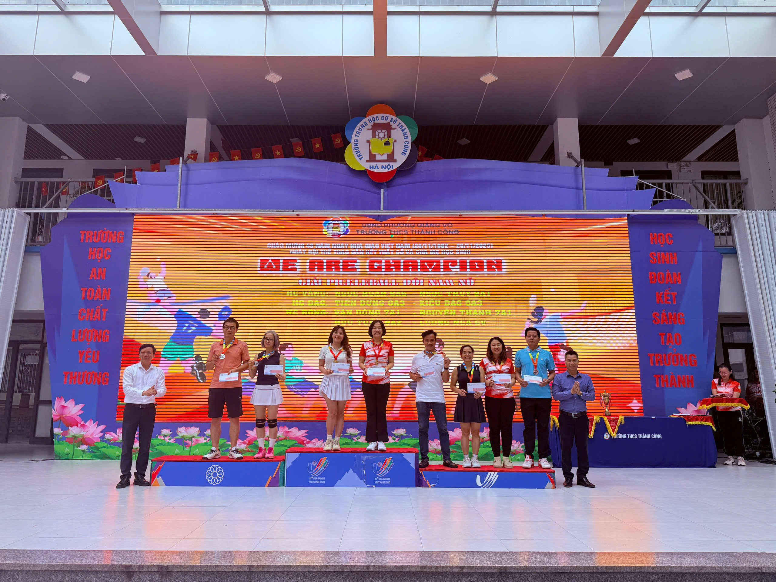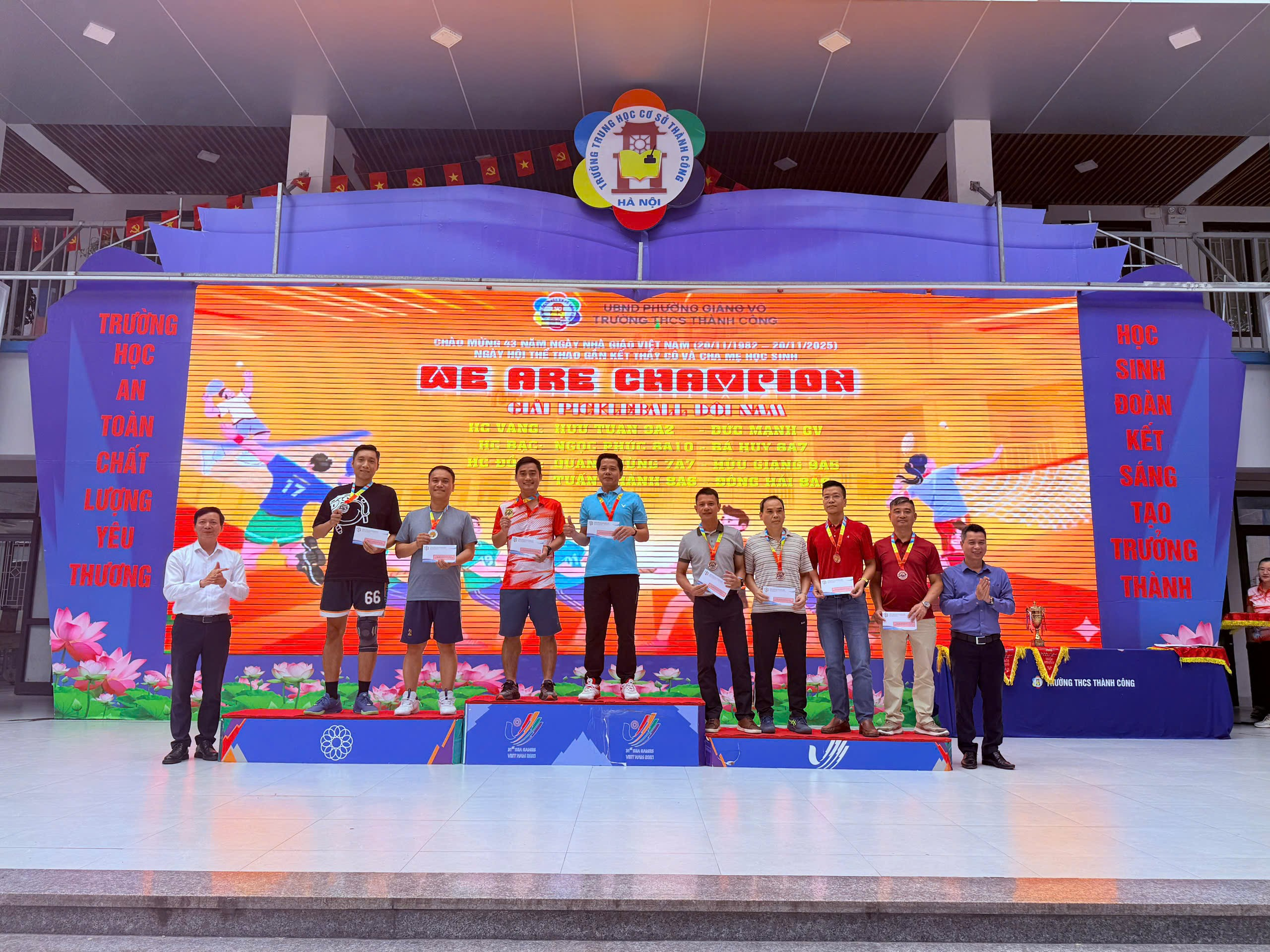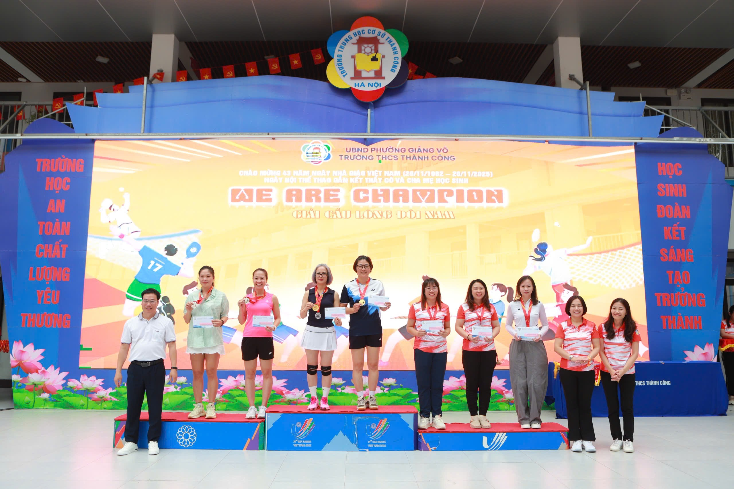 Gác lại bảng đen phấn trắng và những bộn bề công việc, thầy cô và phụ huynh đứng cạnh nhau trên sân khấu để được cùng vinh danh. Ở đó không còn khoảng cách của người dạy và người học mà chỉ còn tình thân, sự thấu hiểu. Mỗi tấm huy chương được trao dù là vàng, bạc hay đồng đều lấp lánh tinh thần đồng đội và sự nỗ lực chân thành với niềm tin sâu sắc: sự nghiệp giáo dục cần lắm một "tinh thần thể thao" - đó là sự đồng lòng, cổ vũ và cùng nhau tiến về phía trước. Giá trị lớn nhất của Hội thao không phải là điểm số mà là tia sáng gắn kết được thắp lên trong trái tim mỗi người, hứa hẹn một sự đồng hành bền chặt và tràn đầy niềm tin hơn nữa vì tương lai tươi sáng của ngôi trường giàu truyền thống “An toàn - Chất lượng - Yêu thương”.
