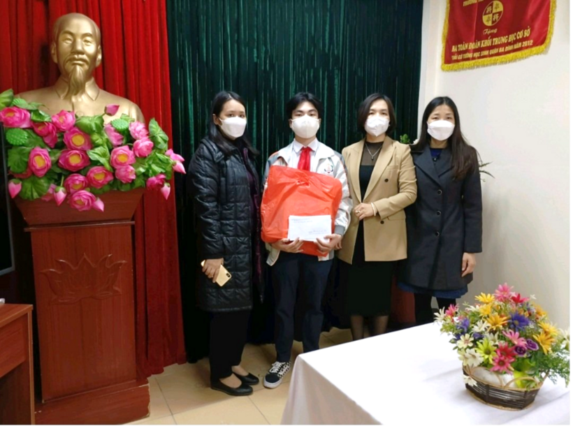 Ban giám hiệu trường THCS Thành Công tặng quà Tết cho học sinh Phạm Gia Khiêm nhân dịp Xuân Nhâm Dần.