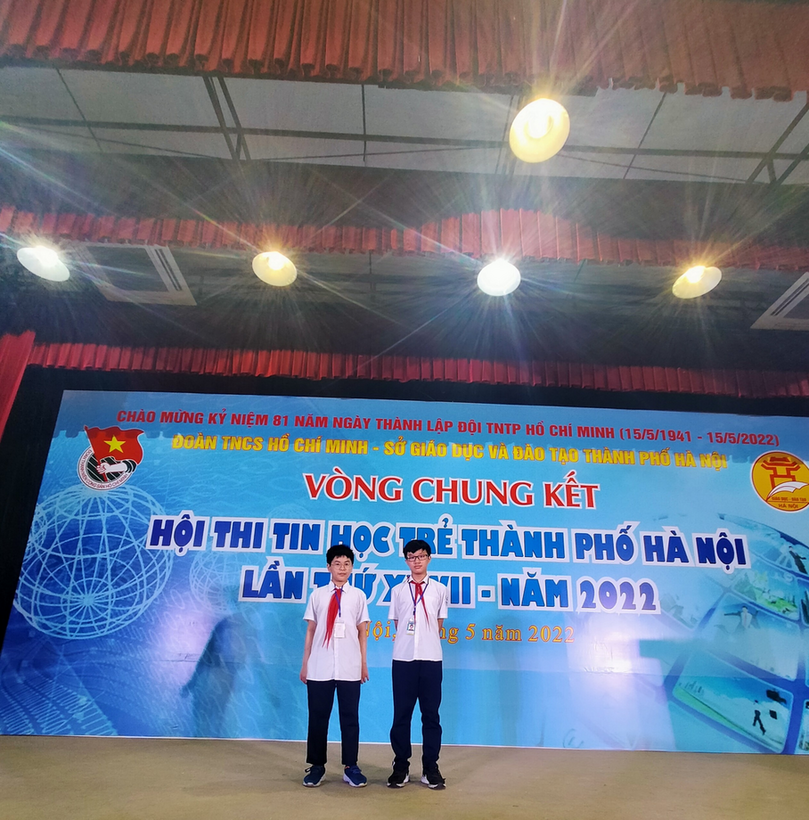 Sau rất nhiều vòng thi khó khăn, cùng với sự nỗ lực không ngừng nghỉ của cô và trò trường THCS Thành Công, con Trịnh An Khánh lớp 7A6 trường THCS Thành Công đã đạt được giải 3 cấp quận Hội thi tin học trẻ thành phố Hà Nội lần thứ XXVII năm 2022.