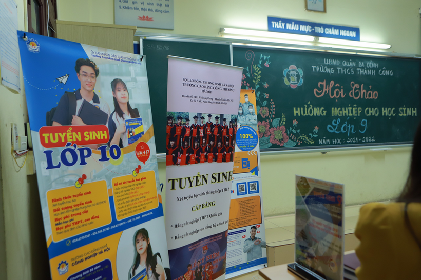 Tham gia buổi hội thảo có rất nhiều các trường Cao đẳng nghề, các trường PTTH dân lập có uy tín trên địa bàn Thành phố Hà Nội như : Cao đẳng truyền hình Hà Nội, Cao đẳng bách nghệ Hà Nội, Cao đẳng Công nghiệp Hà Nội, Cao đẳng Công thương Hà Nội, THPT Hoàng Mai…Mỗi trường đều mang đến cho phụ huynh những thông tin cơ bản nhất về ngôi trường của mình với các thế mạnh riêng biệt, chương trình học, các kế hoạch liên thông, mức học phí, mức hỗ trợ của nhà nước…Các đơn vị cũng cam kết sẵn sàng trao đổi, giải đáp, hỗ trợ cho từng phụ huynh có nhu cầu tìm hiểu về nhà trường. Phải khẳng định rằng, chương trình đào tạo 9+ đã và đang đem lại nhiều lợi ích thiết thực cho người học, bởi tính ưu việt của chương trình là học phí thấp cùng với nhiều chính sách hỗ trợ học nghề, phân luồng đào tạo nghề nên vấn đề học phí không còn là gánh nặng với gia đình học sinh. 18 tuổi tốt nghiệp ra trường, các em có thể tham gia ngay vào thị trường lao động, ưu việt hơn so với lựa chọn tham gia học xong THPT rồi mới học nghề...