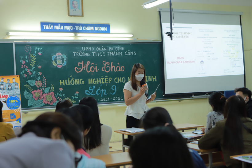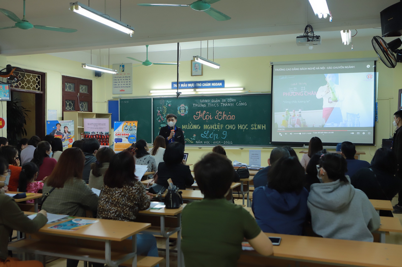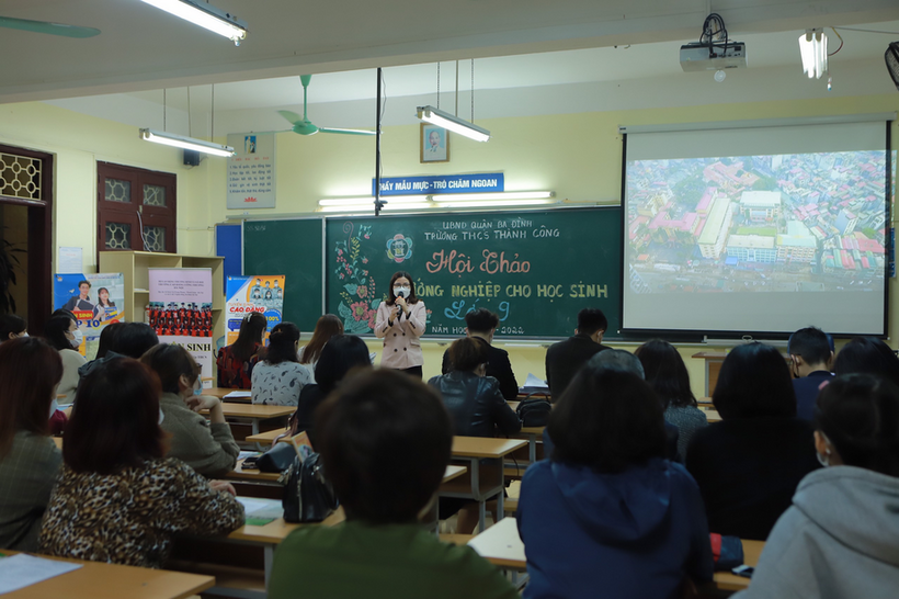 Bắt đầu buổi hội thảo, cô giáo Trần Thị Quỳnh Hương - Phó hiệu trưởng nhà trường đã có những lời trao đổi thân tình về mục đích của buổi hội thảo là cùng các phụ huynh khơi dậy năng lực, định hướng tương lai cho các con. Ông cha ta có câu: “Ruộng bề bề không bằng nghề trong tay”, hàm ý nói đến tầm quan trọng của việc học nghề, có nghề và làm nghề. Ngày nay, những quan niệm ấy vẫn còn nguyên giá trị, giúp học sinh có định hướng để lập thân, lập nghiệp, kiến tạo tương lai. Đối với các con học sinh ở lứa tuổi 15, 16, hơn lúc nào hết, cha mẹ, thầy cô cần ở bên hỗ trợ, tư vấn, chia sẻ, định hướng cho các con, giúp các con tránh được tâm lí hoang mang, lo âu, áp lực nhất là đối với những học sinh có lực học còn hạn chế.