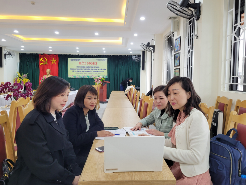 Tiếp theo, đại diện hai nhà trường cùng thông qua kế hoạch và kí kết Biên bản ghi nhớ giữa hai trường về Chương trình kết nghĩa, triển khai phong trào "Nhà trường cùng chung tay phát triển - Thầy cô cùng sẻ chia trách nhiệm" giai đoạn 2023-2025”.