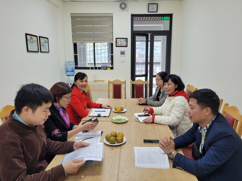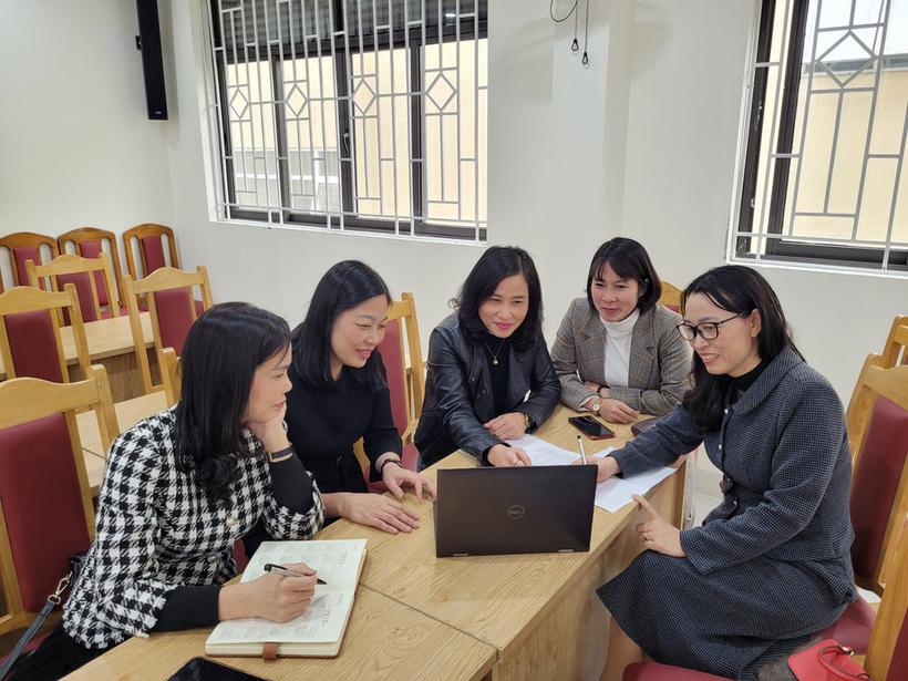 Đại diện các tổ chuyên môn của hai nhà trường cùng giao lưu, chia sẻ