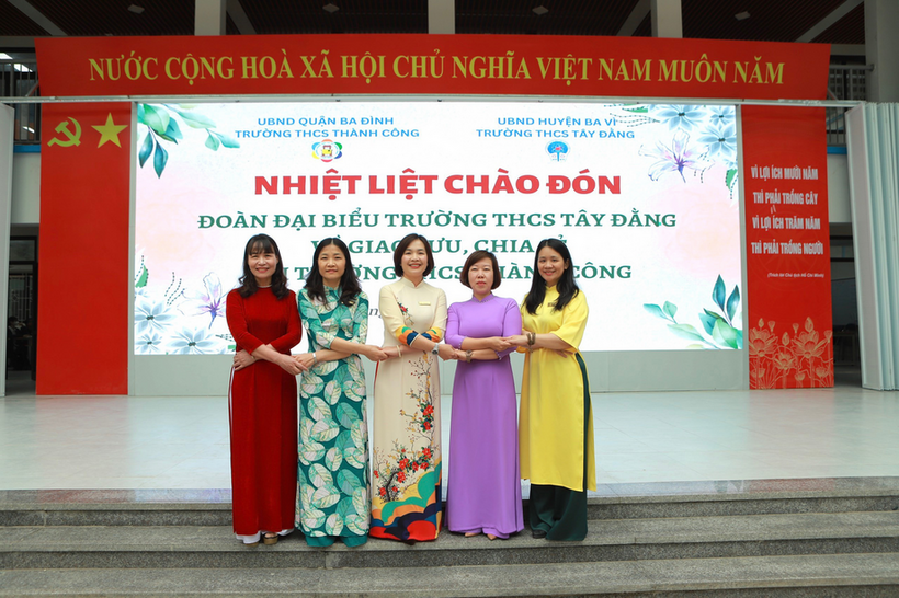 Thực hiện Kế hoạch số 10/KHLP-GDĐT ngày 02/02/2023 của Phòng Giáo dục và Đào tạo quận Ba Đình và Phòng Giáo dục và Đào tạo huyện Ba Vì về Phối hợp tổ chức phong trào "Nhà trường cùng chung tay phát triển - Thầy cô cùng sẻ chia trách nhiệm" giai đoạn 2023-2025 giữa các trường Mầm non - Tiểu học - THCS quận Ba Đình và huyện Ba Vì; chiều ngày 30/3/2023 trường THCS Thành Công quận Ba Đình rất vinh dự và vui mừng được đón đoàn cán bộ quản lí và các thầy cô giáo trường THCS Tây Đằng huyện Ba Vì về giao lưu, chia sẻ và kí kết hợp tác giữa 2 nhà trường.