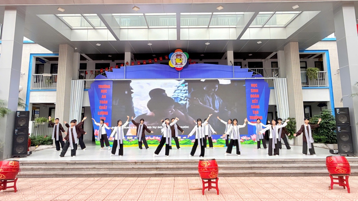 Và cuối cùng, tiết mục văn nghệ lớp 8A8 đã kết thúc bằng sự rộn ràng, vui tươi của bài “Trống cơm,” của nhạc sĩ Y Vân các em đã khuấy động không khí bằng những vũ điệu dân gian tươi mới, kết hợp giữa nét truyền thống và hơi thở hiện đại.