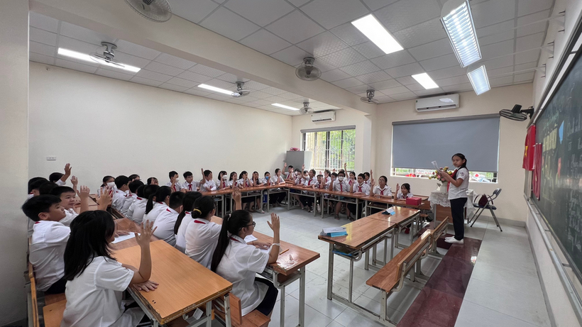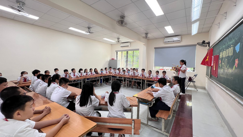 7h sáng mình đã có mặt ở lớp. Tưởng mình là người đến lớp sớm nhất hóa ra lớp học đã nhộn nhịp từ bao giờ. Bàn ghế được kê ngay ngắn, bảng được trang trí tinh tươm. Cô Hồng Phạm - giáo viên chủ nhiệm của bọn mình đã chụp cho cả lớp được bao nhiêu tấm ảnh rồi.