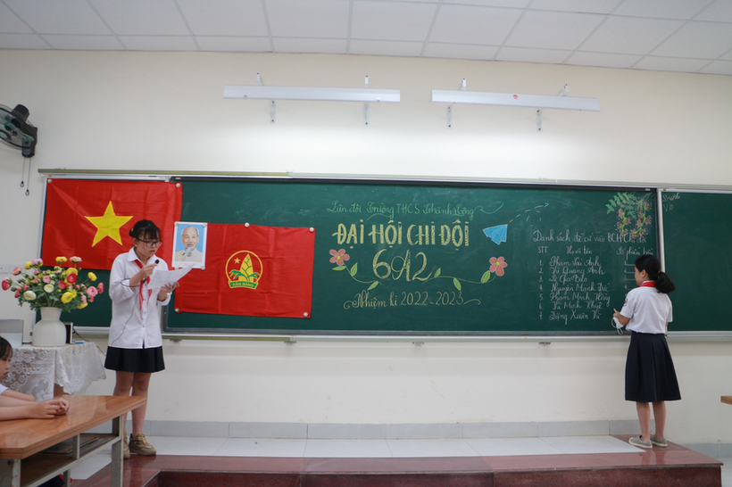 - Hôm nay lớp con tổ chức Đại hội chi Đội đấy!