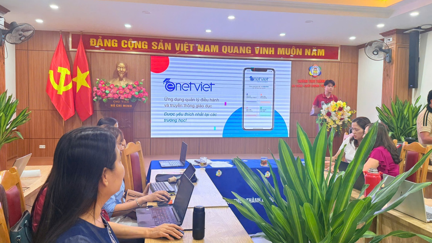 Nhận thức rõ vai trò của chuyển đổi số trong giáo dục, Trường THCS Thành Công luôn là đơn vị đi đầu trong việc ứng dụng công nghệ thông tin vào quản lý, giảng dạy và kết nối giữa nhà trường – gia đình – học sinh. Buổi tập huấn lần này nằm trong kế hoạch nâng cao năng lực số cho đội ngũ cán bộ, giáo viên, nhân viên, đồng thời giúp mỗi thành viên của Hội đồng sư phạm nắm vững, khai thác hiệu quả các tính năng mới của phần mềm eNetViet.