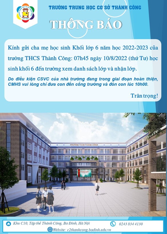 THÔNG BÁO: Lịch tập trung học sinh khối 6 năm học 2022-2023