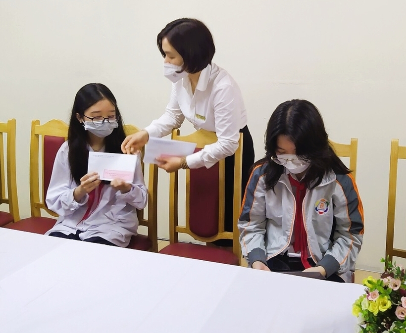 Không chỉ được các thầy cô lãnh đội quan tâm, chỉ bảo, dẫn dắt, đội tuyển học sinh giỏi còn nhận được sự động viên kịp thời từ Ban giám hiệu nhà trường ngay trước kì thi Học sinh giỏi cấp Thành phố. Tại cuộc gặp, các bạn không giấu được niềm vui và tự hào chen lẫn hồi hộp, lo lắng khi được đứng trong đội ngũ của học sinh giỏi quận Ba Đình tham gia vòng thi cấp Thành phố. Cô giáo Nguyễn Ngọc Anh - Hiệu trưởng nhà trường đã ân cần trao quà và dặn dò, động viên các con học sinh tự tin, nỗ lực để đạt thành tích cao.