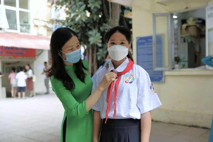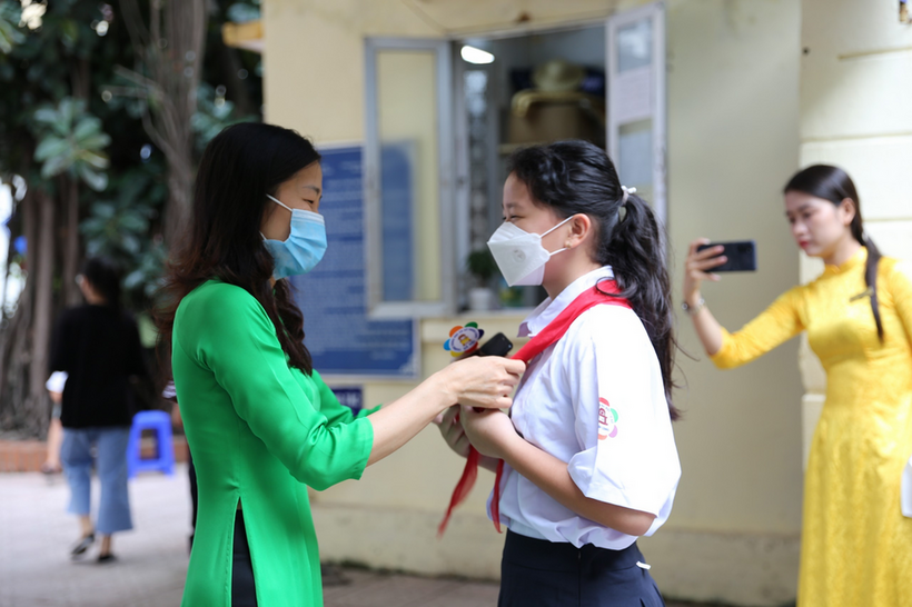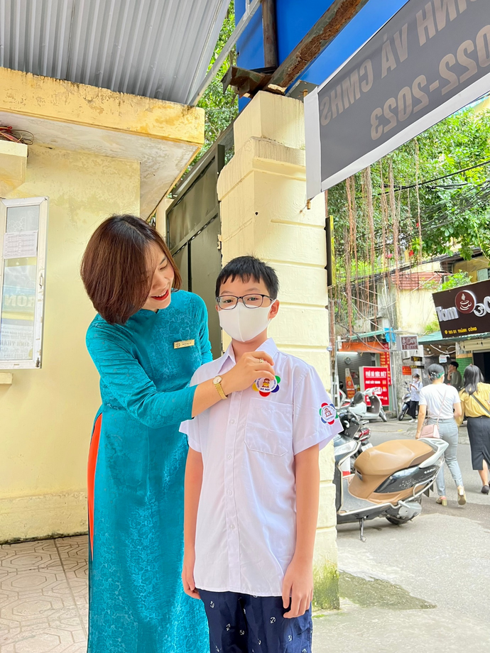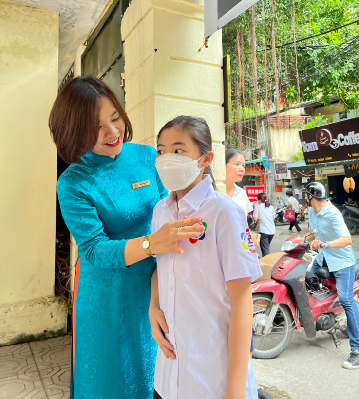 Với mong muốn giúp các con học sinh nhanh chóng hòa nhập với môi trường mới, tạo cho các con cảm giác ấm áp tự tin ngay từ ngày đầu tiên đến trường, nên từ sáng sớm, tại cổng trường các con đã được BGH cùng các thầy cô giáo chào đón bằng một món quà đặc biệt. Đó là một chiếc logo xinh xắn của trường được chính các thầy cô cài lên ngực áo cho các con trong niềm xúc động và tự hào. Sau đó các con được các thầy cô chỉ dẫn tận tình lên trên lớp học của mình.