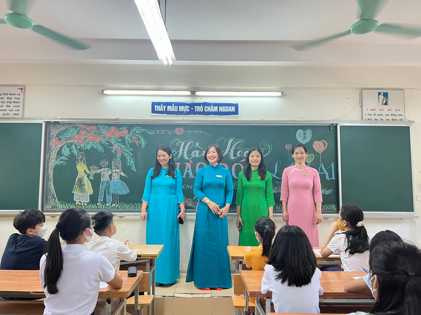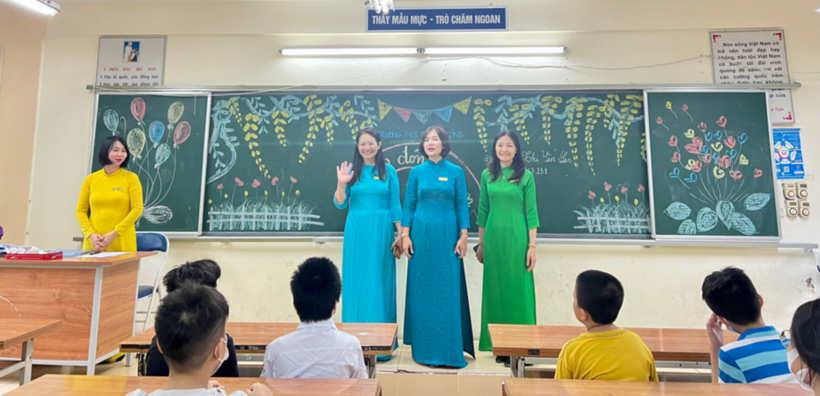 Lên trên lớp, bảng đen phấn trắng được trang trí rực rỡ sắc màu cùng cô giáo chủ nhiệm thân yêu rạng rỡ, ân cần đón các con. Các con được tham gia nhiều các hoạt động tập thể như đoán ý đồng đội, tập làm phóng viên, ai nhanh hơn… qua đó giúp các con làm quen với các bạn mới, với cô giáo mới một cách tự nhiên nhất.