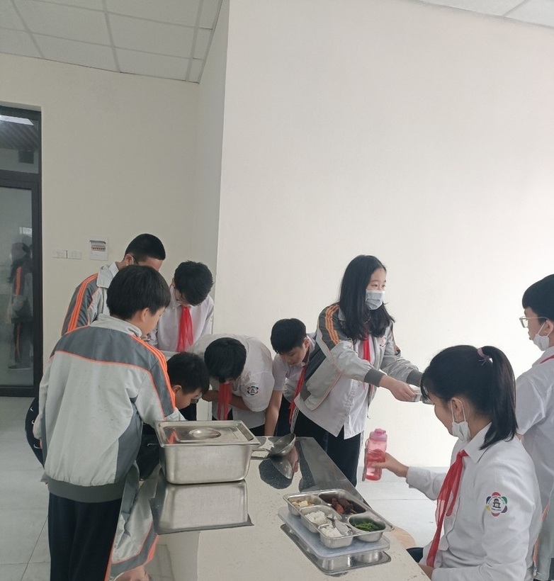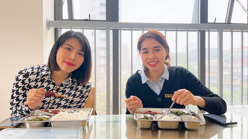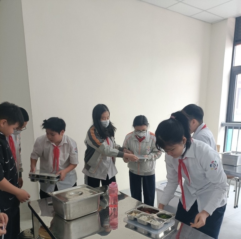 Cán bộ lớp chia cơm rất thành thạo và chuyên nghiệp.